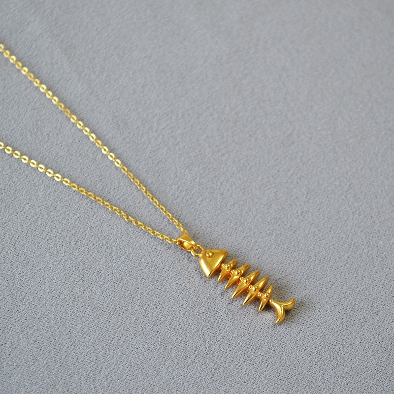 O Colar Espinha de Peixe Vintage combina inspiração clássica com um acabamento luxuoso, ideal para realçar o estilo com um toque retro sofisticado. O pendente em forma de espinha de peixe transmite originalidade e personalidade, enquanto o banho a ouro confere brilho e elegância. Uma peça perfeita para complementar visuais modernos ou destacar produções mais clássicas.