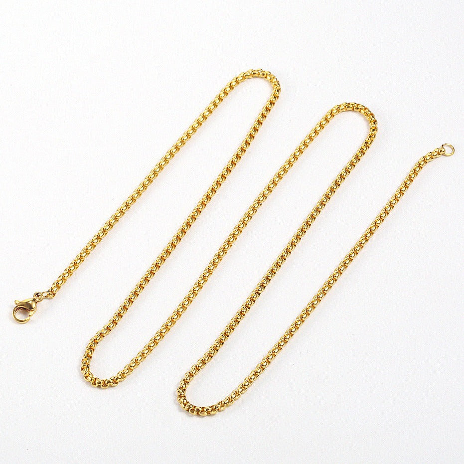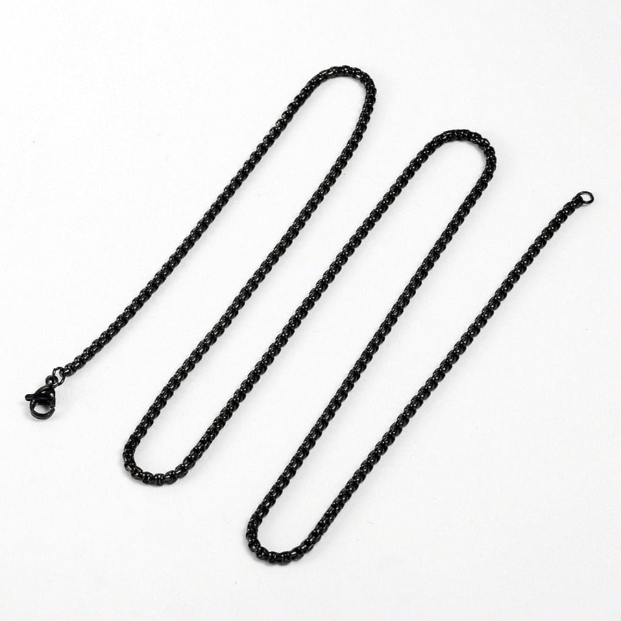 Este colar de aço inoxidável está disponível em várias cores e tamanhos. Feito com material de alta qualidade, é durável e resistente. Adicione um toque de elegância ao seu visual com este colar moderno e versátil.