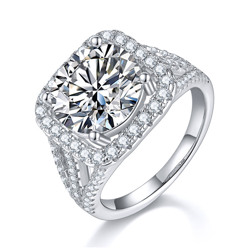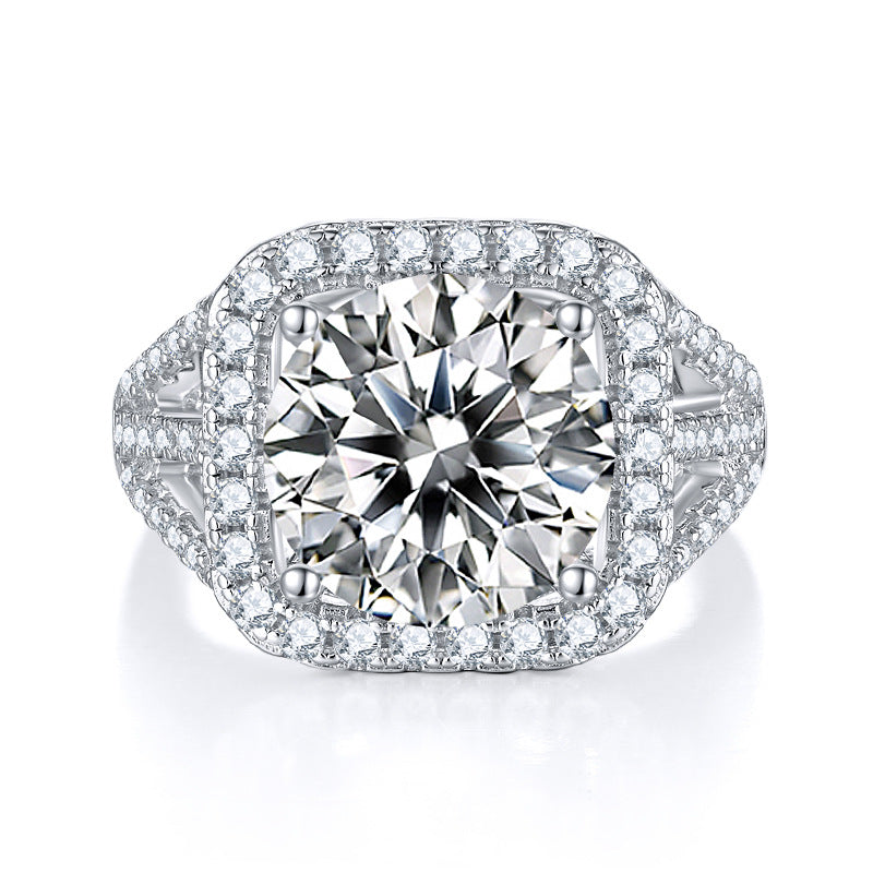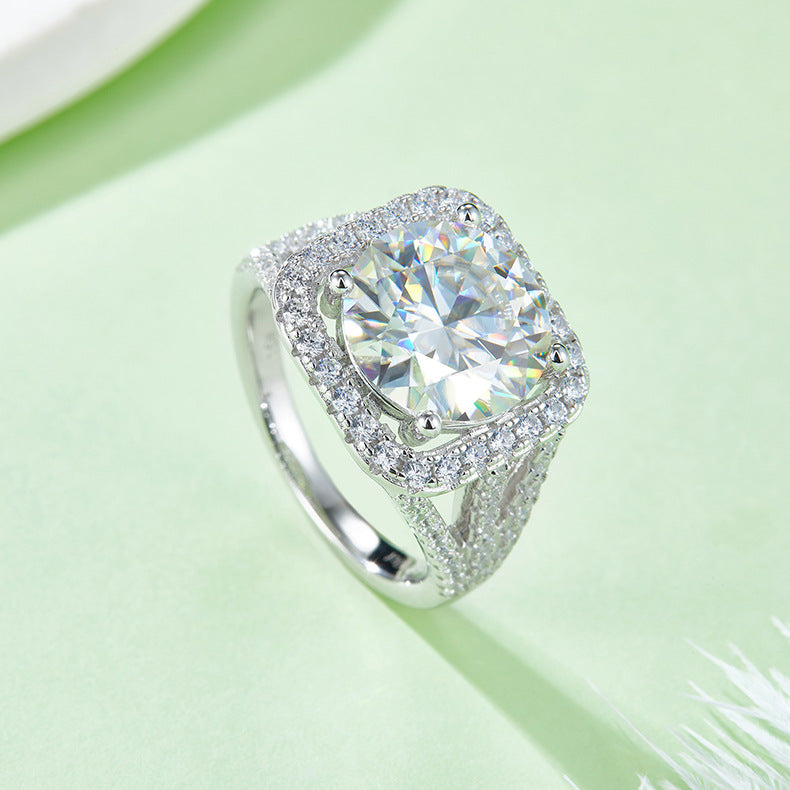 Anel Halo em Prata 925 com Moissanite 5 ct