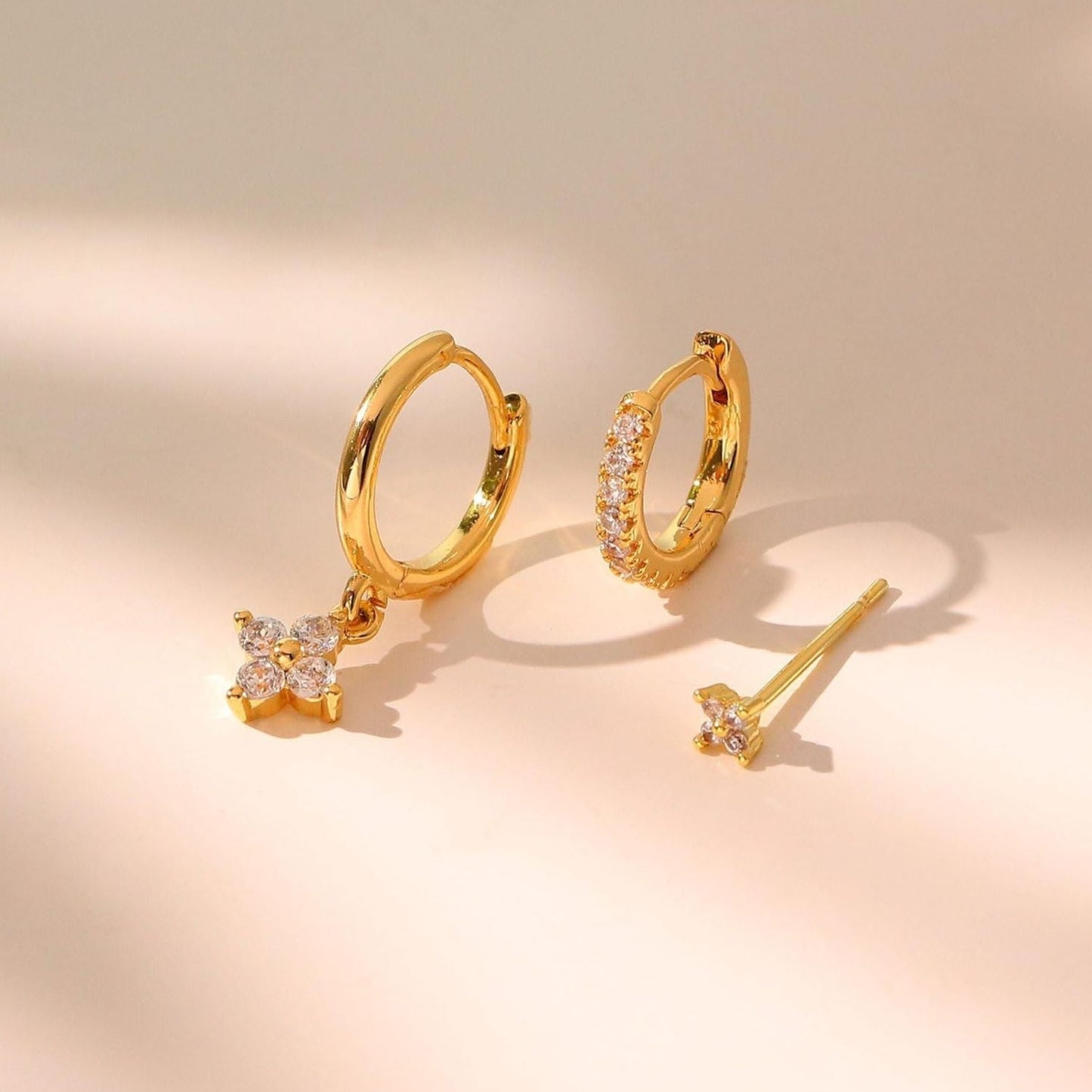 Um toque de brilho que nunca sai de moda. O Conjunto Essencial com Zircónias é composto por três pares de brincos versáteis e delicados, perfeitos para o uso diário ou para dar um acabamento discreto a looks mais elaborados. Cada peça reflete luz com intensidade graças às zircónias cintilantes, garantindo elegância e luminosidade em qualquer ocasião.