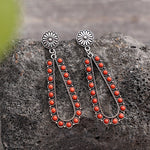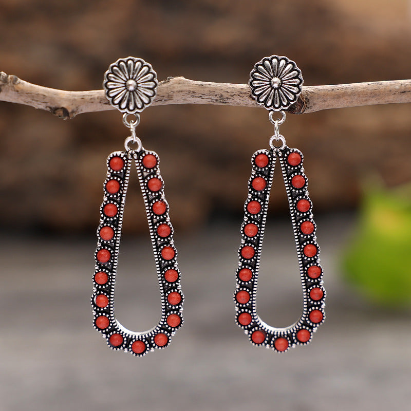Estes brincos vintage são feitos de pedra natural vermelho turquesa e liga de metal. Com 2*7 cm de tamanho, são uma adição elegante para qualquer look. O vermelho vibrante da pedra traz um toque de cor enquanto o prateado adiciona um brilho clássico. Conjunto de 2 peças.