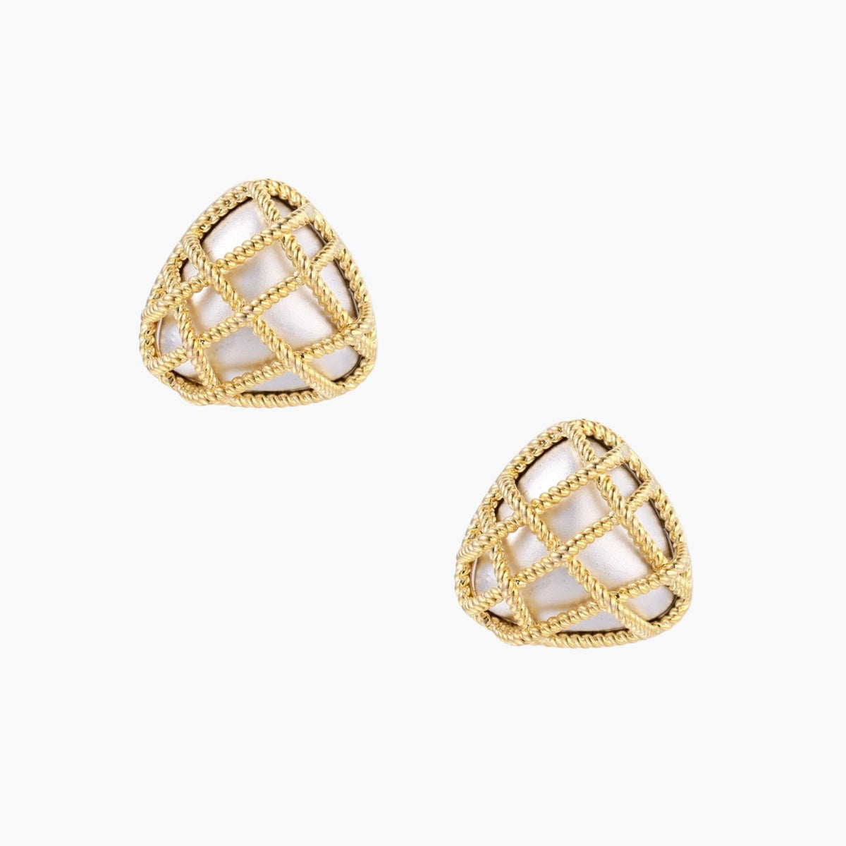 Brincos em malha geométrica banhados a ouro 18K com detalhes em corda de inspiração arquitetónica que irão transmitir confiança e elegância.