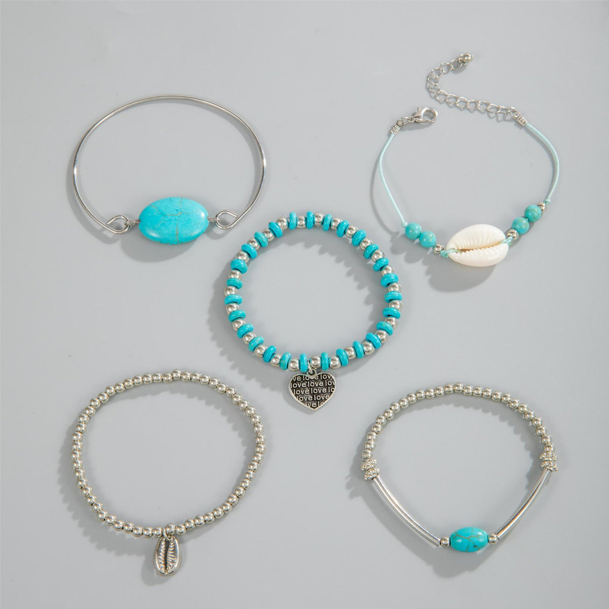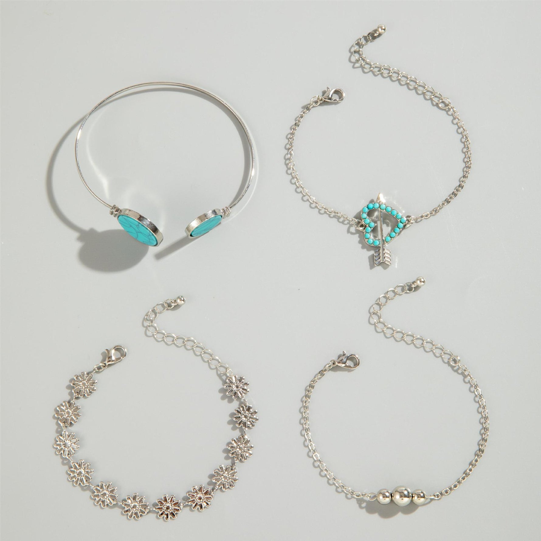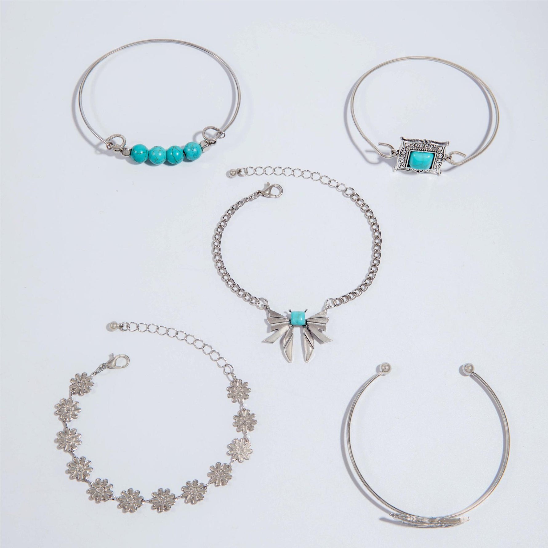 O Conjunto de Pulseiras Minimalistas é perfeito para trazer um toque de elegância e estilo ao seu visual. Com várias cores disponíveis, feito com pedra natural turquesa e uma liga de metal resistente, este conjunto oferece uma largura de 7 a 31 mm e um tamanho ajustável de 17 a 22,5 cm. Adicione um toque de charme e sofisticação às suas roupas com este conjunto de pulseiras incrível.