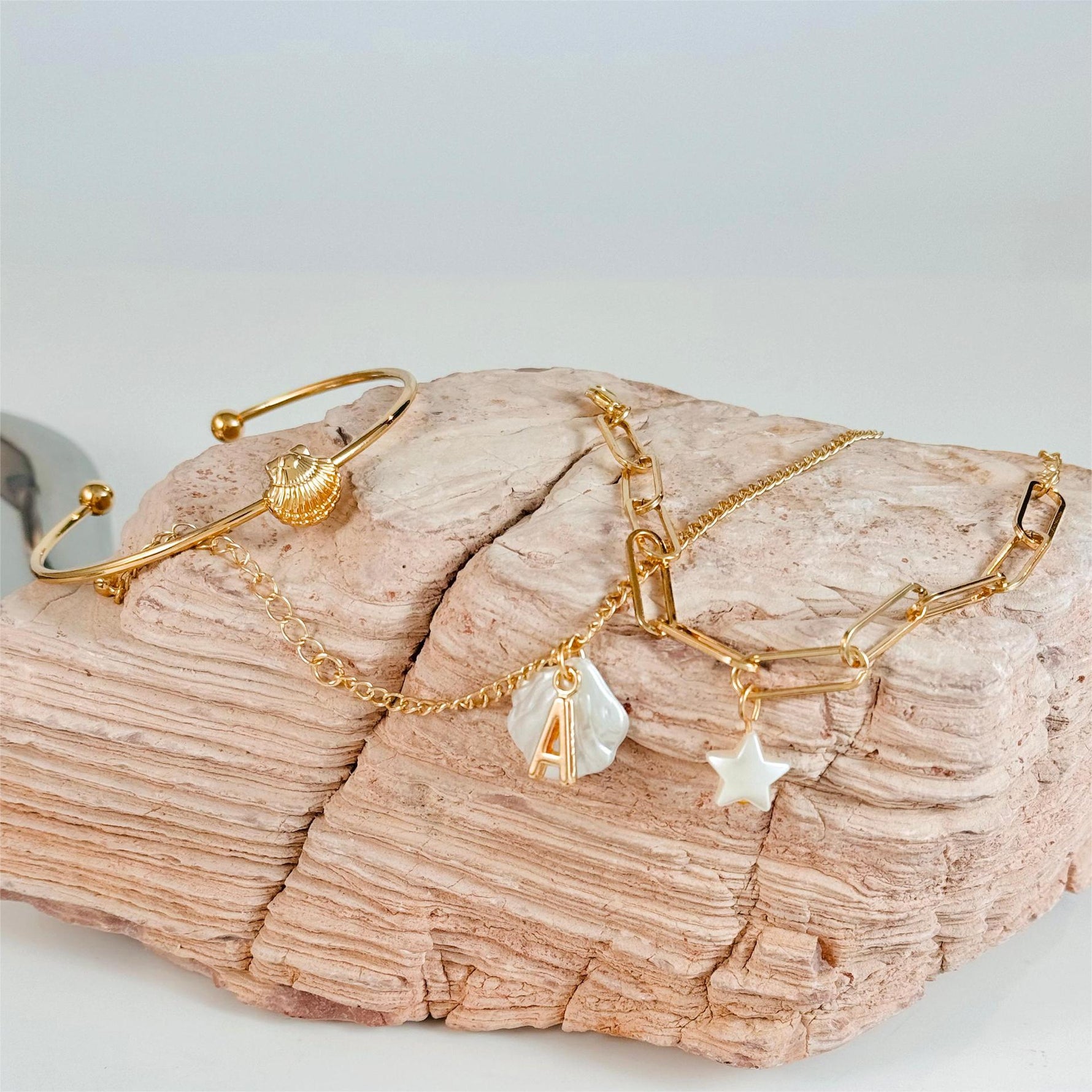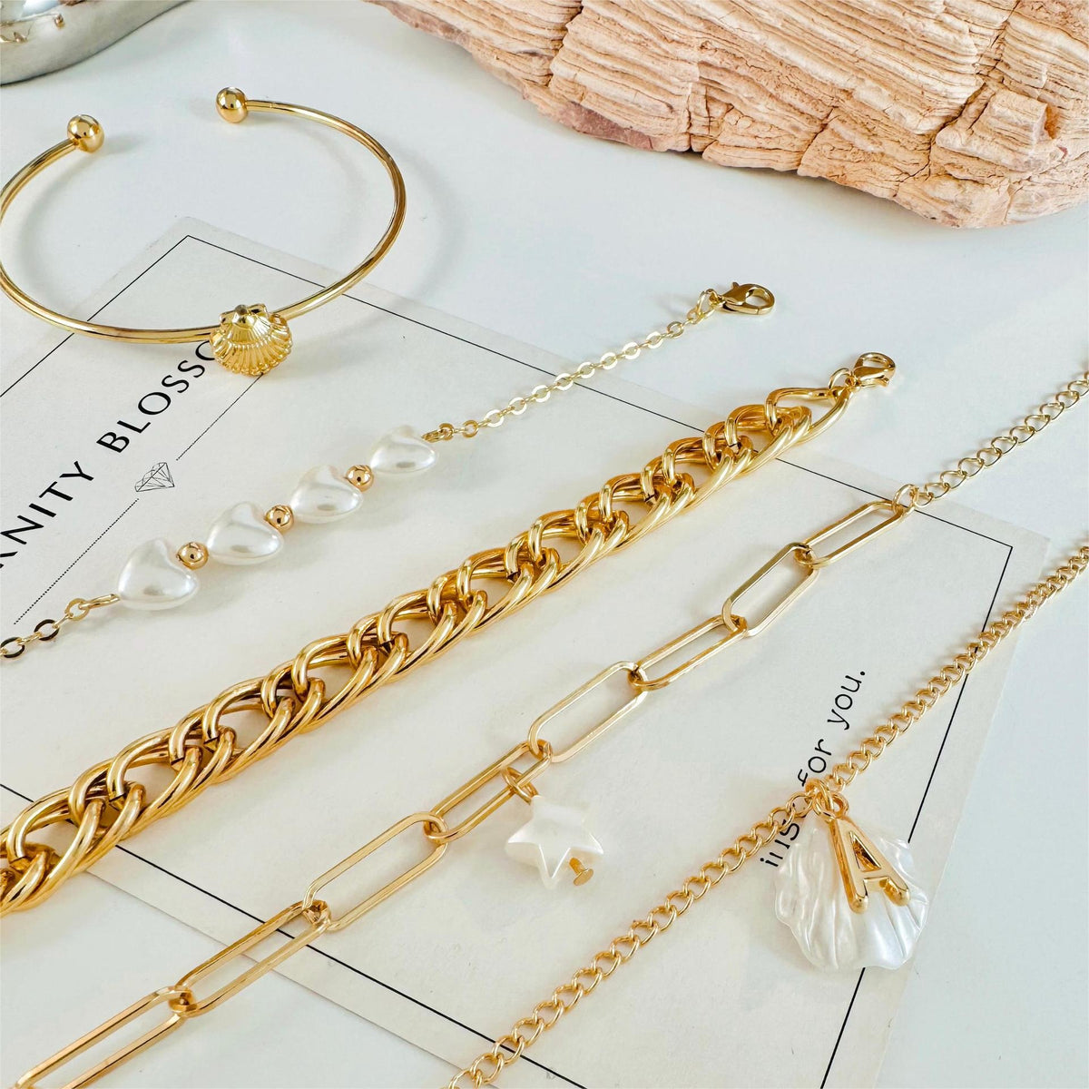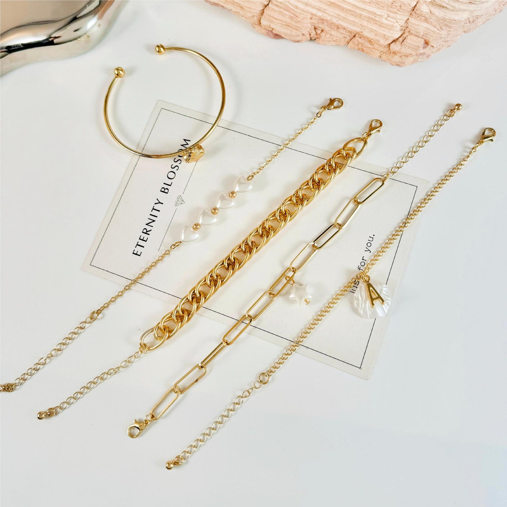 Este conjunto de 6 pulseiras minimalistas é perfeito para um look elegante e moderno. Feitas de concha com detalhes em liga de metal dourado, elas são ajustáveis de 17 a 22,5 cm para um ajuste perfeito no seu pulso. Adicione um toque de sofisticação ao seu estilo com essas pulseiras.