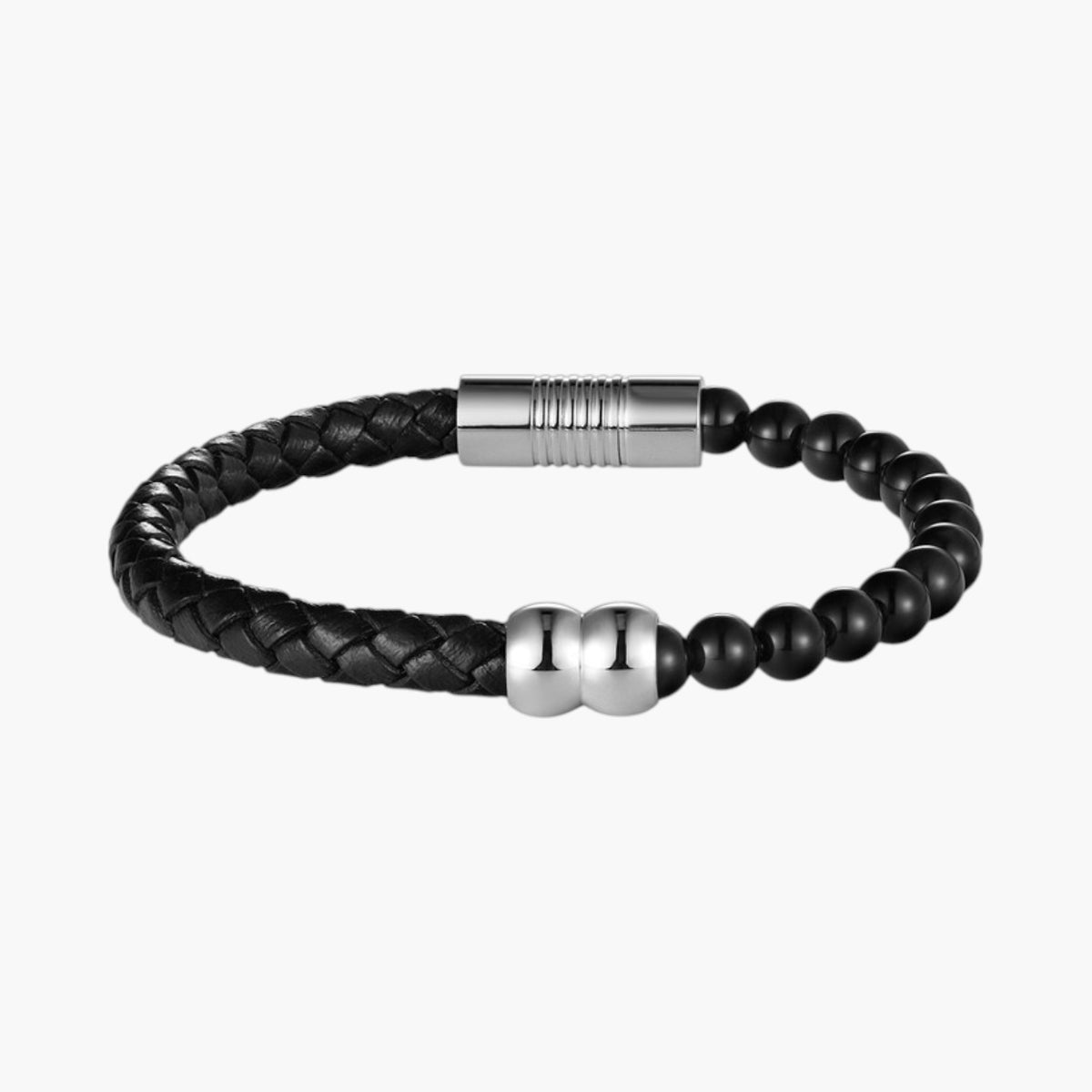 O acabamento combina o couro com as pedras naturais e detalhes metálicos, criando uma pulseira elegante, robusta e perfeita para quem procura um acessório com estilo e carácter.