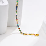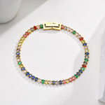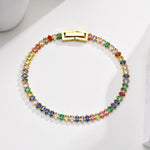 A Pulseira Rainbow é uma peça de destaque que une a beleza das cores vibrantes à sofisticação dos acabamentos metálicos. Com zircónias cúbicas AAA meticulosamente cravadas ao longo da pulseira, cria um efeito luminoso e expressivo que simboliza alegria, liberdade e autenticidade.