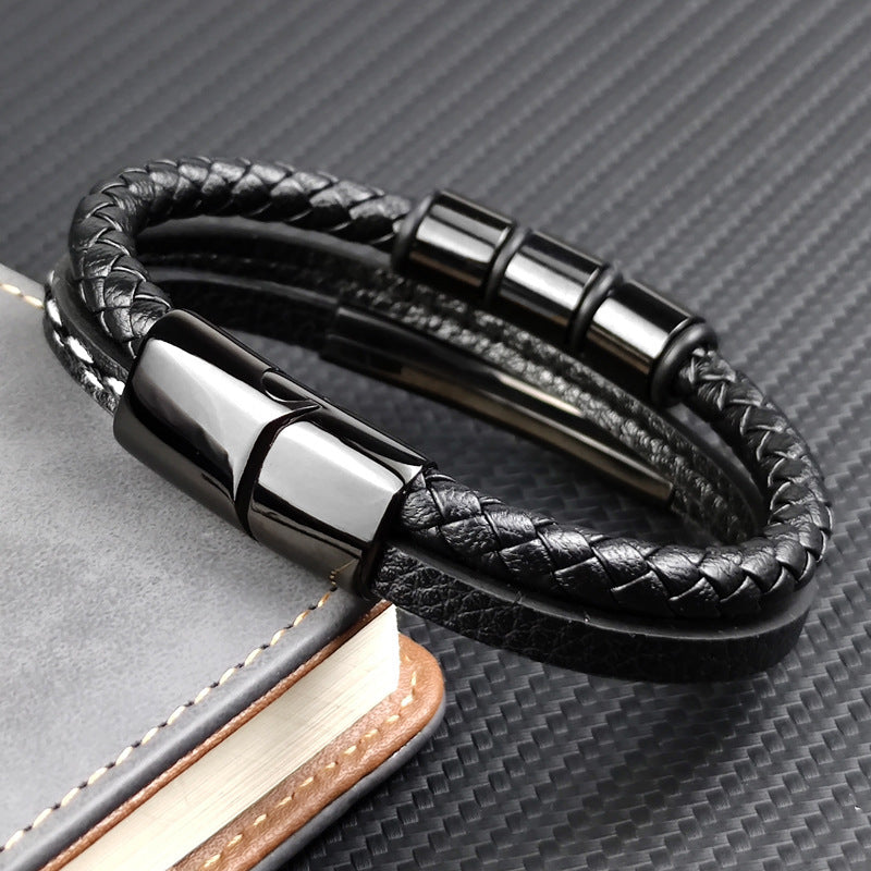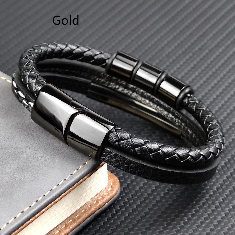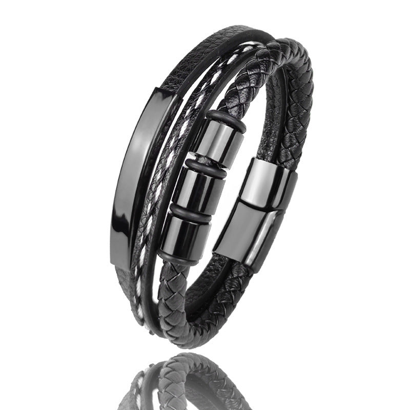 Pulseira Personalizada de Couro e Aço Inoxidável