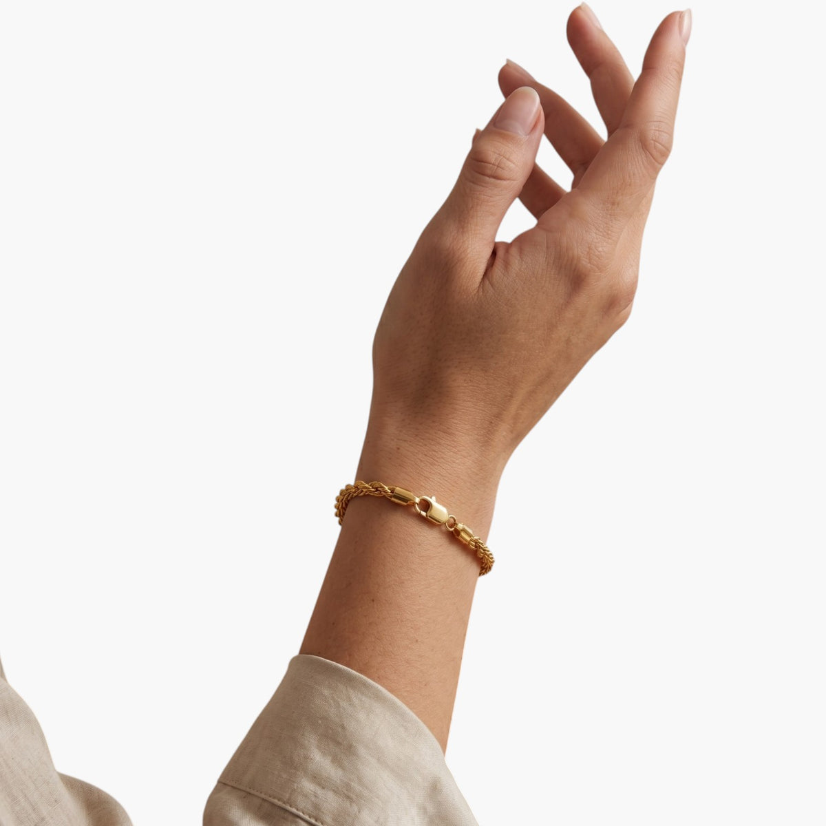 O acabamento polido realça o efeito torcido da corrente, criando uma pulseira moderna, elegante e perfeita para acrescentar um toque sofisticado ao seu estilo.