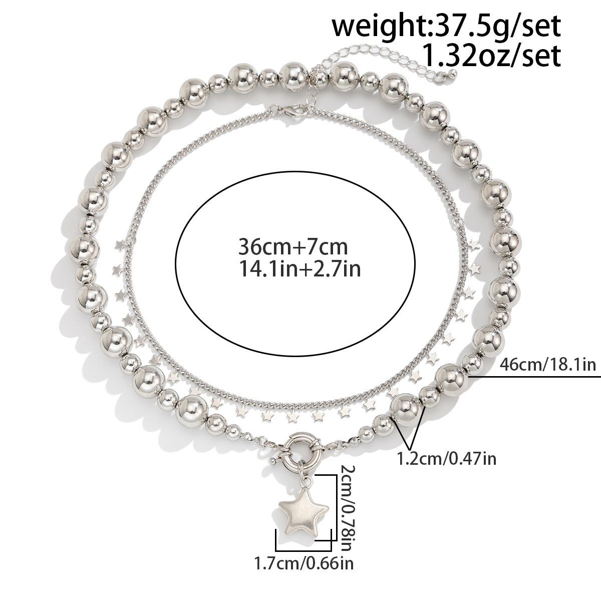 Tamanho da Corrente: 46 cm / Ajustável: 36 - 43 cm