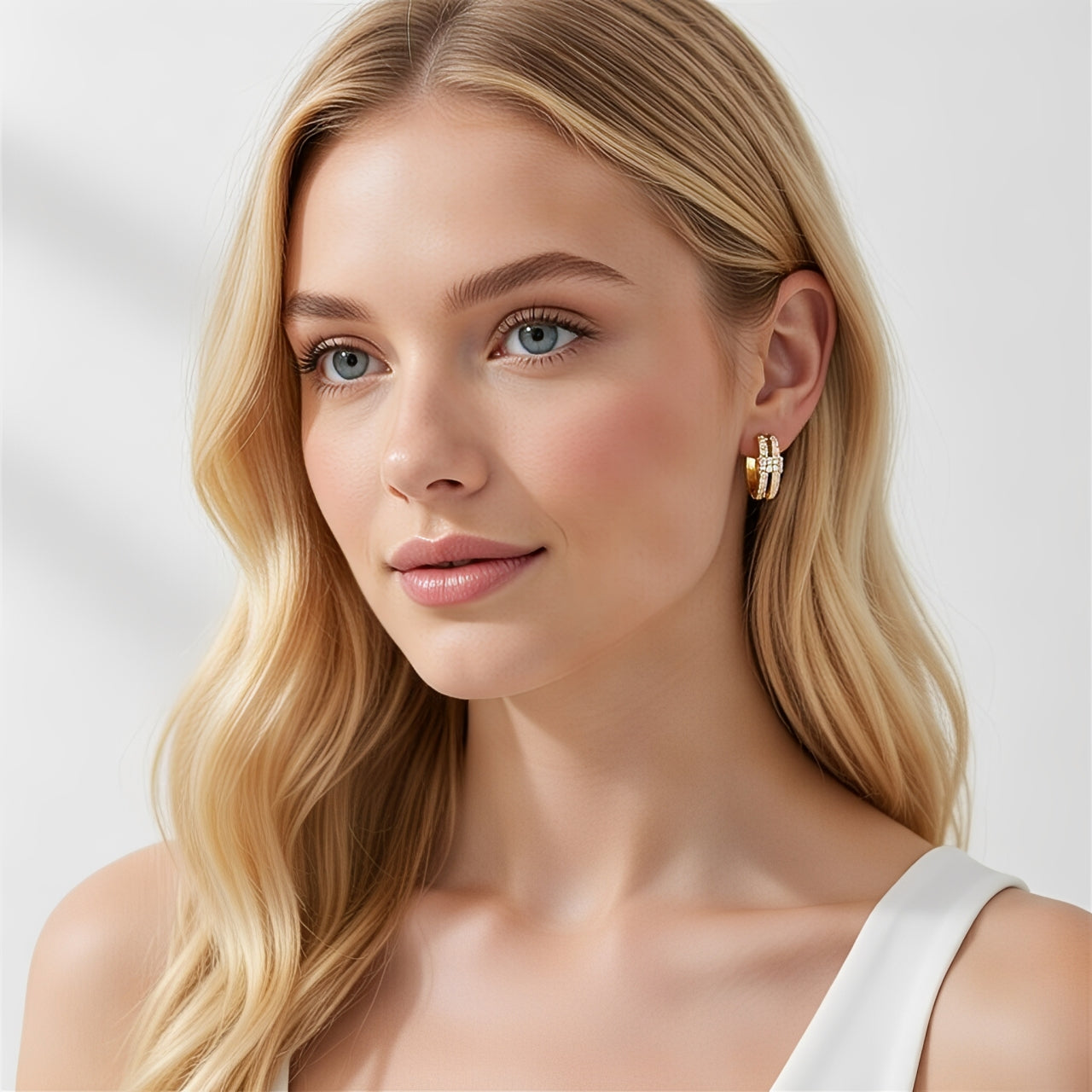 Delicados e sofisticados, os Brincos Argola com Zircónias são a escolha ideal para quem aprecia elegância subtil no dia a dia. O design compacto em argola é realçado pelo brilho refinado das zircónias, que captam a luz com delicadeza e acrescentam um toque de glamour discreto. O acabamento dourado reforça a sua feminilidade e versatilidade, tornando-os perfeitos para complementar qualquer look com charme e requinte.