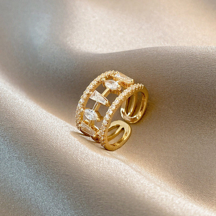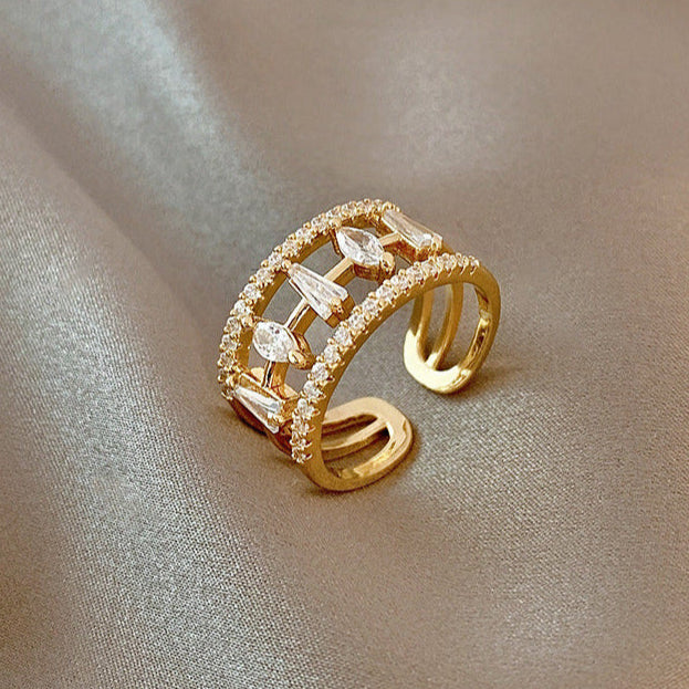 This stunning open ring, with a gold finish and delicate cubic zirconia inlay, is the perfect choice for those looking for an elegant and versatile accessory. Its modern and sparkling design adds a touch of glamour to any look, whether for everyday or special occasions.