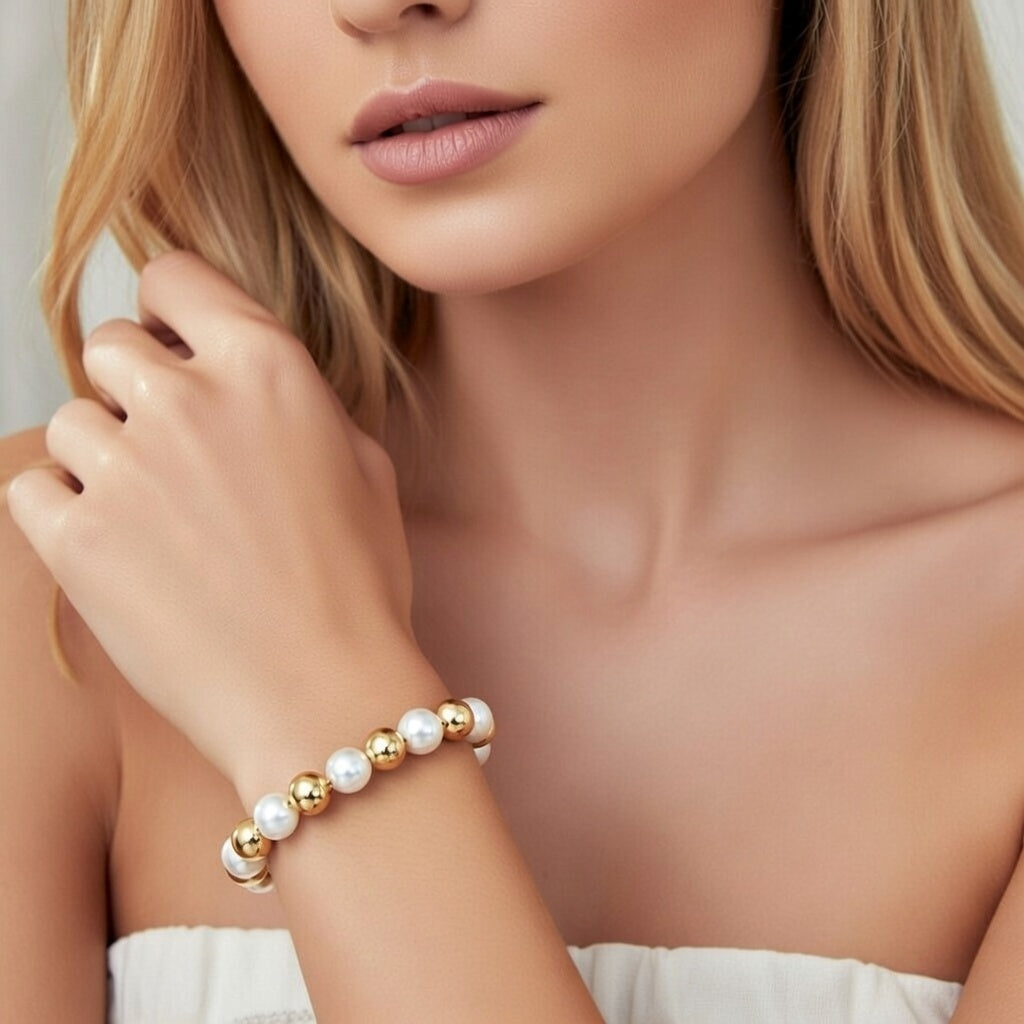 Elegante e intemporal, a Pulseira Clássica de Pérolas é um verdadeiro símbolo de sofisticação feminina. As pérolas, conhecidas pelo seu charme discreto e beleza natural, conferem a esta peça um estilo refinado que nunca sai de moda, ideal tanto para ocasiões especiais como para elevar looks do dia a dia.