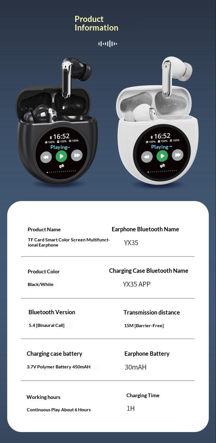 Desenvolvidos para utilizadores exigentes que procuram inovação, autonomia e controlo total, estes auriculares Bluetooth destacam-se pelo seu estojo inteligente com ecrã tátil a cores, permitindo gerir múltiplas funções sem recorrer ao smartphone. Com som estéreo de alta qualidade, chamadas nítidas e dupla forma de reprodução, oferecem uma experiência moderna, prática e versátil para o dia a dia, trabalho, viagens ou lazer.