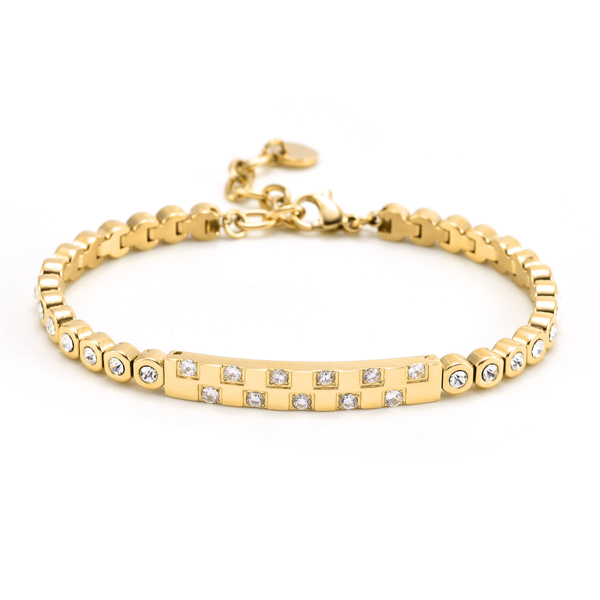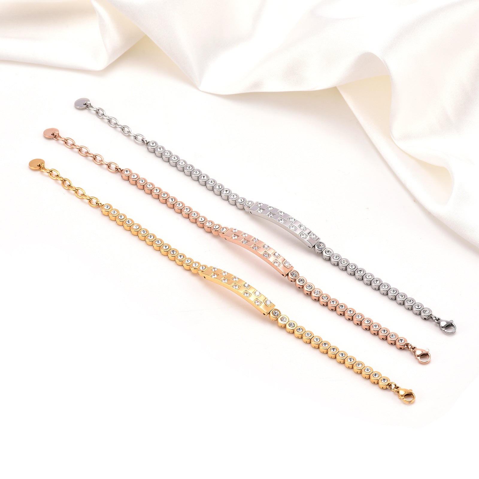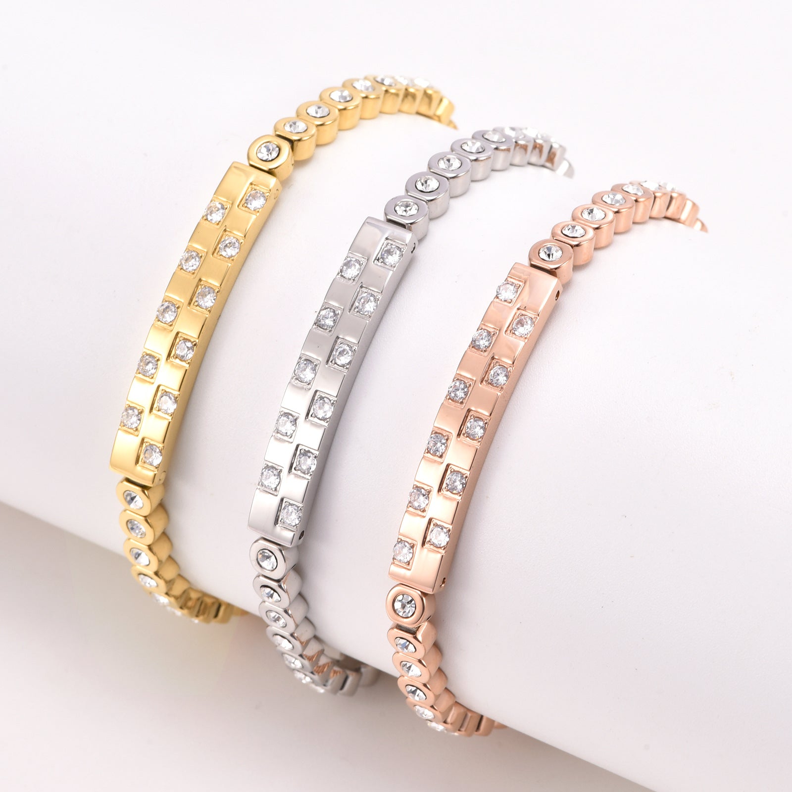 This stainless steel bracelet is available in a variety of colors and is made with high-quality cubic zirconia. Its resistant material ensures durability and its adjustable dimensions provide a perfect fit for wrists from 16 to 24 cm. Add a touch of style and elegance to your look with this versatile and modern bracelet.