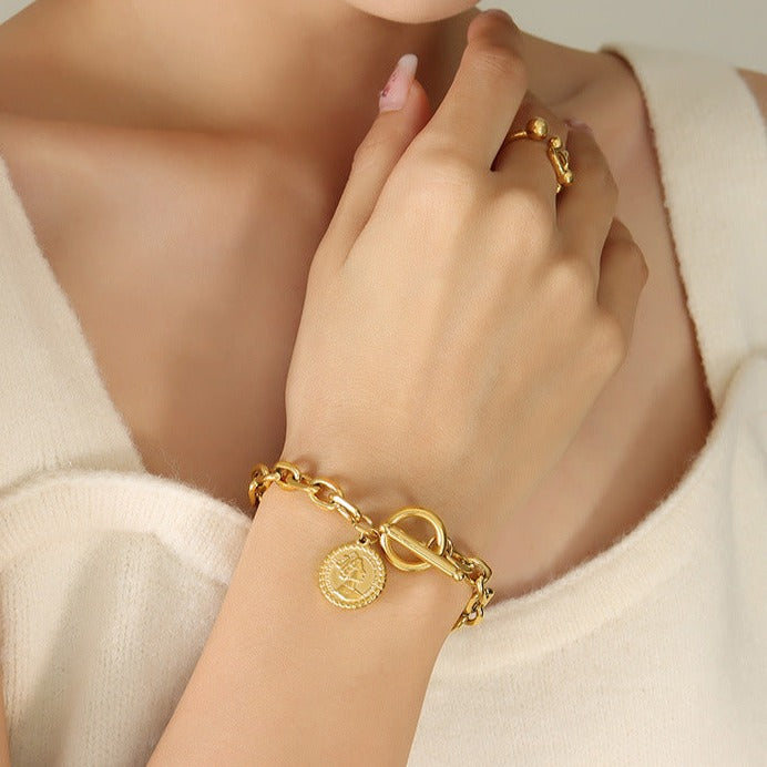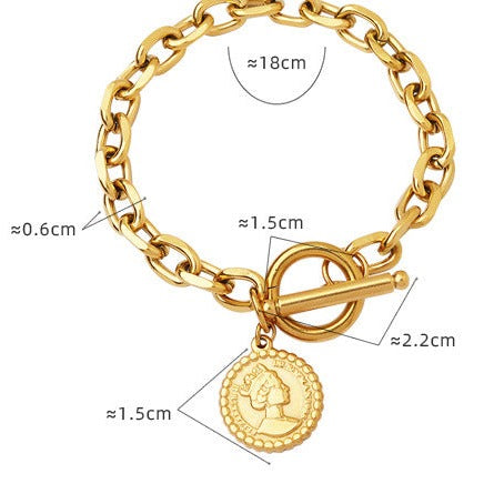 Express your style with elegance using the Queen stainless steel bracelet. With a gold finish and a width of 6 to 22 mm, it fits perfectly on wrists measuring between 17 and 18 cm. Made of resistant material, it guarantees durability and sophistication on any occasion.