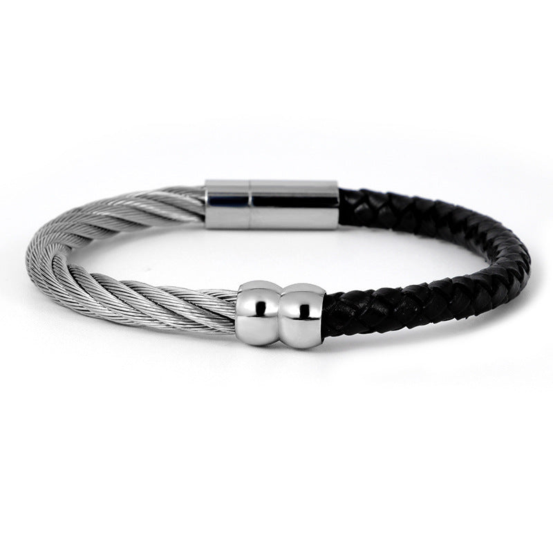 This leather and stainless steel bracelet is the perfect complement to any look. Made from high-quality material, it comes in a variety of colors and has a magnetic clasp for ease of use. At 6 mm wide and measuring between 17 and 18 cm, it is comfortable and stylish at the same time.