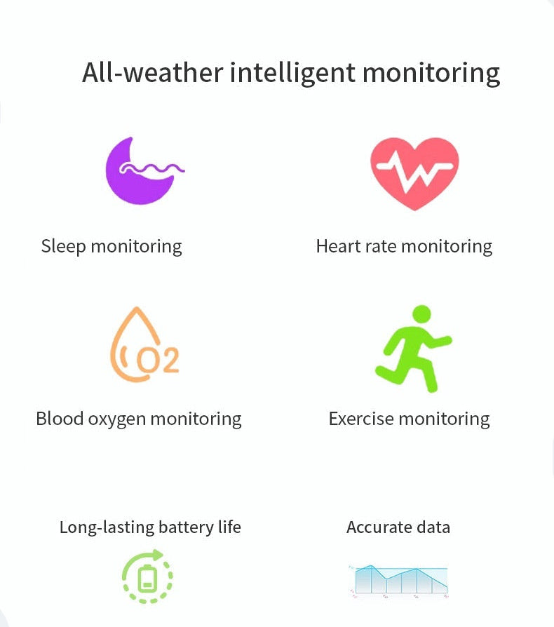Continuous health monitoring: sleep, heart rate, blood oxygen, physical activity