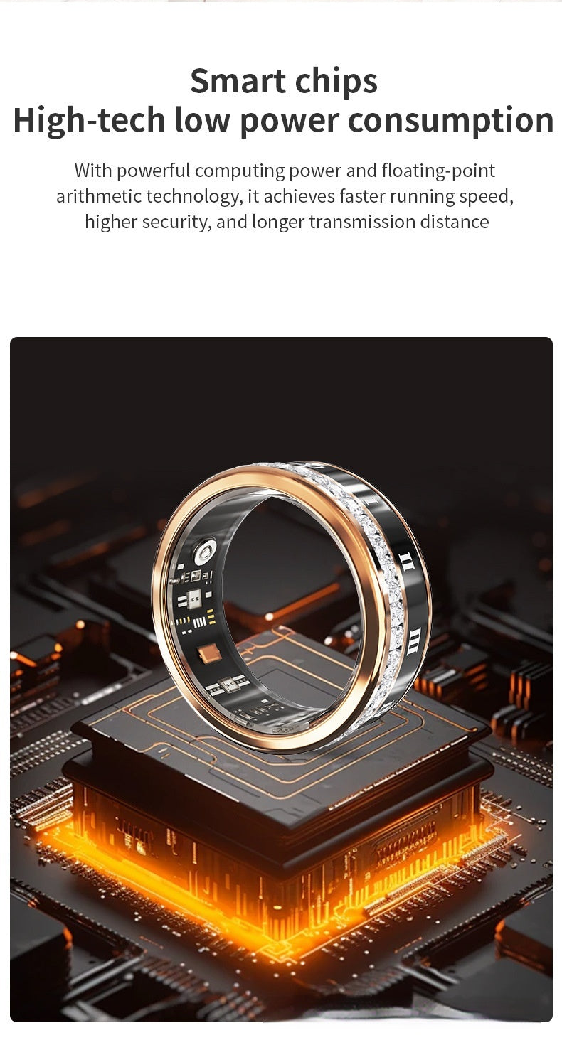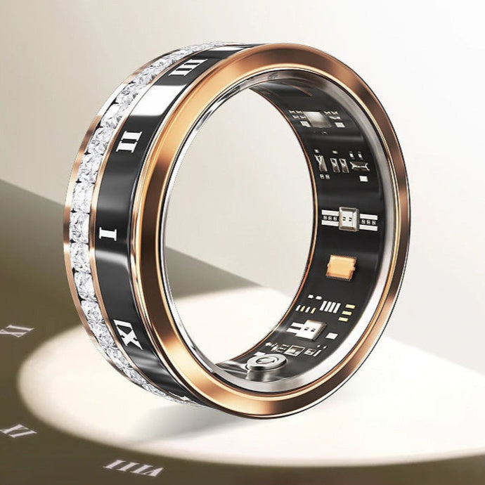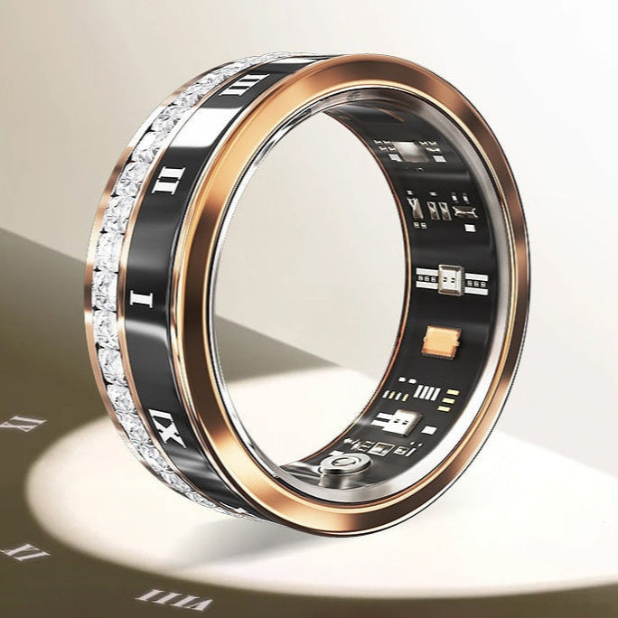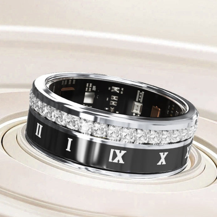 The Smart Ring with Decorative Inlays combines elegance and functionality in a lightweight, comfortable and sophisticated design. Perfect for those looking for a versatile accessory, this ring combines the charm of a modern piece of jewelry with the performance of a smart ring device with 24/7 health monitoring.