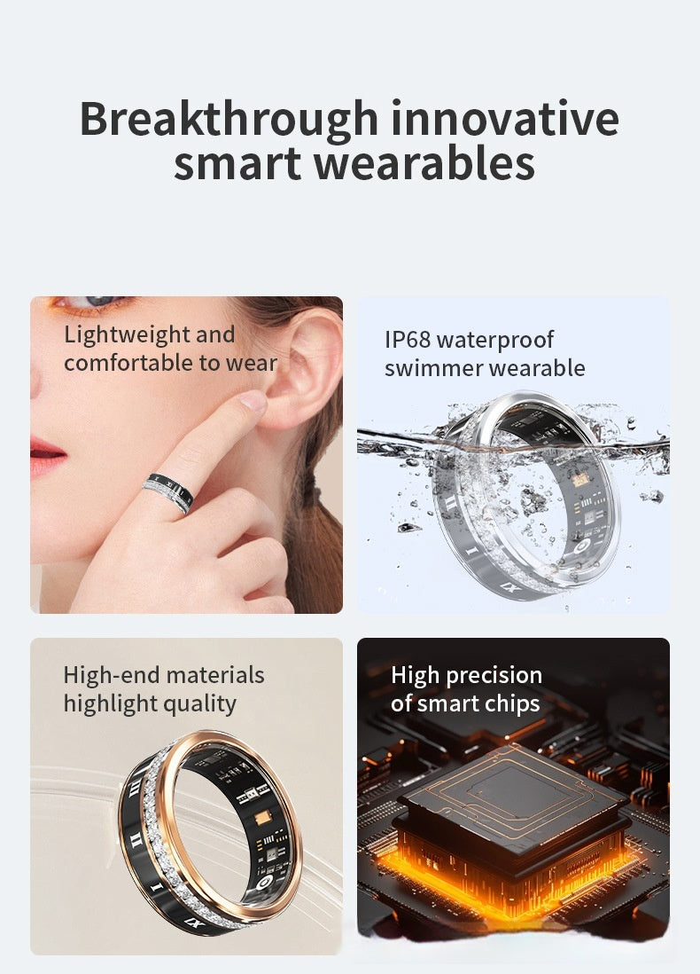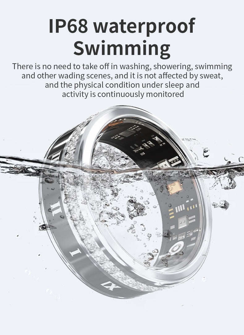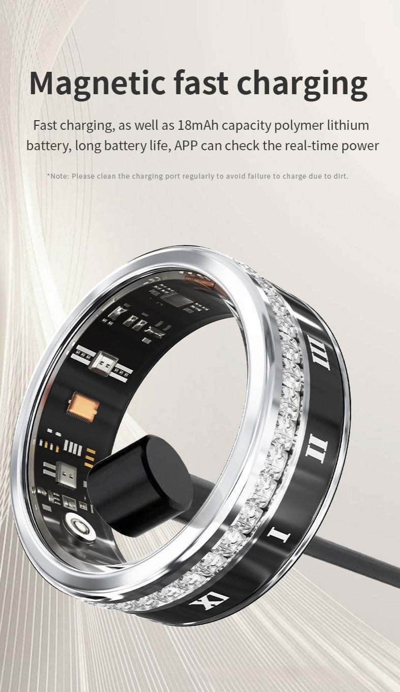 With advanced sensors and a low-power smart chip, the ring offers continuous monitoring of heart rate, blood oxygen levels, sleep quality and physical activity data. Ideal for everyday use, it is water resistant (IP68) and does not need to be removed for showering or swimming. Its long-lasting battery (18mAh) and fast magnetic charging ensure convenience and efficiency.
