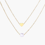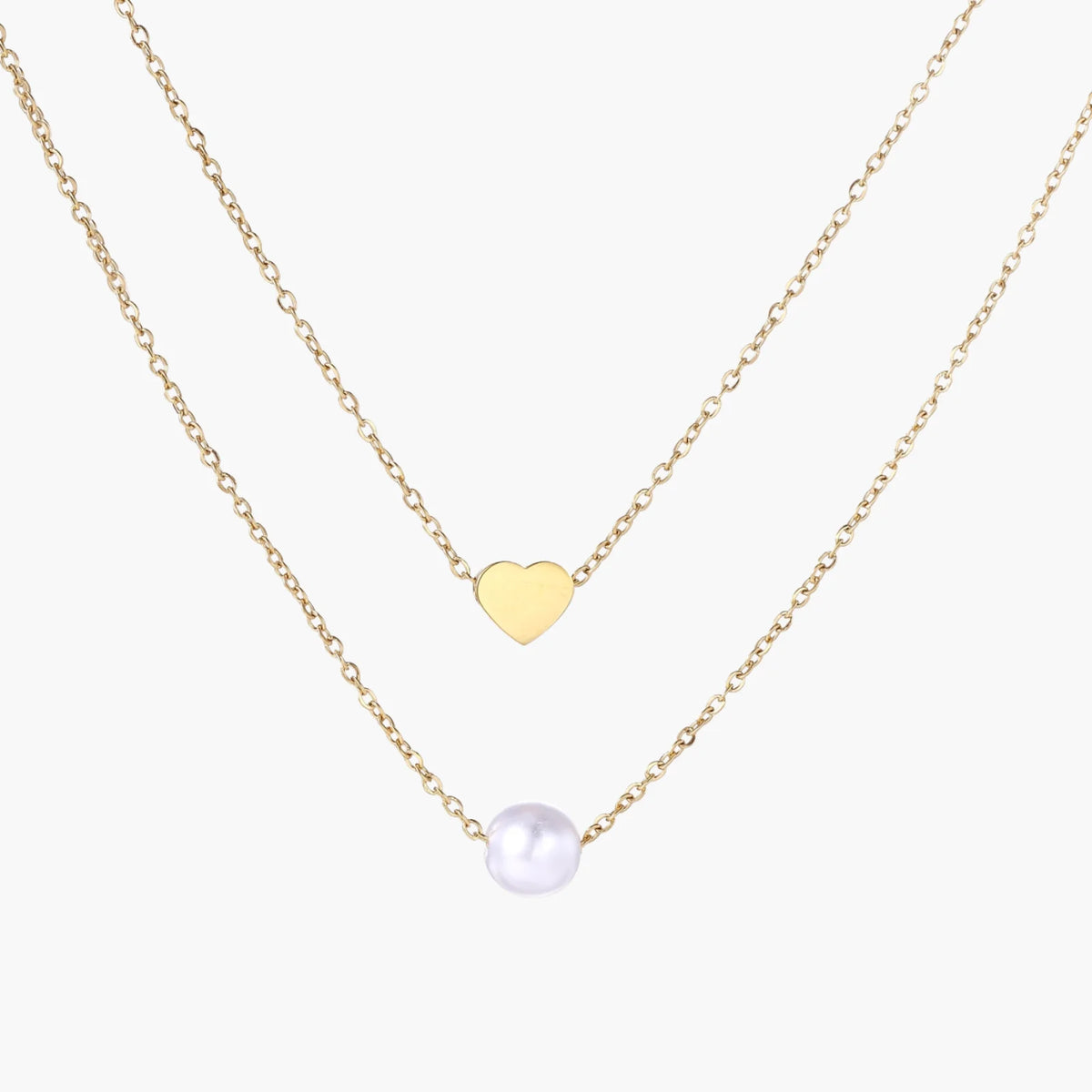 Camadas delicadas banhadas a ouro 14K apresentam um pendente em forma de coração acompanhado por uma pérola cultivada luminosa, transmitindo confiança suave e energia feminina.