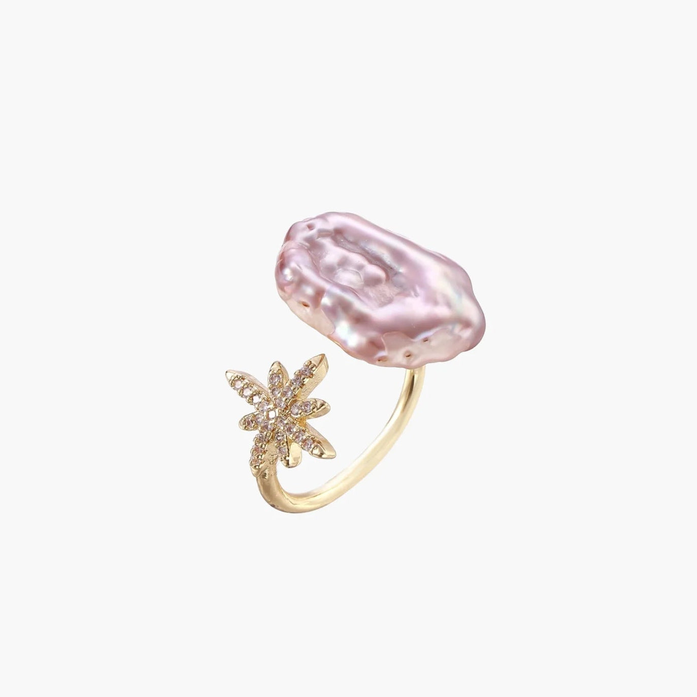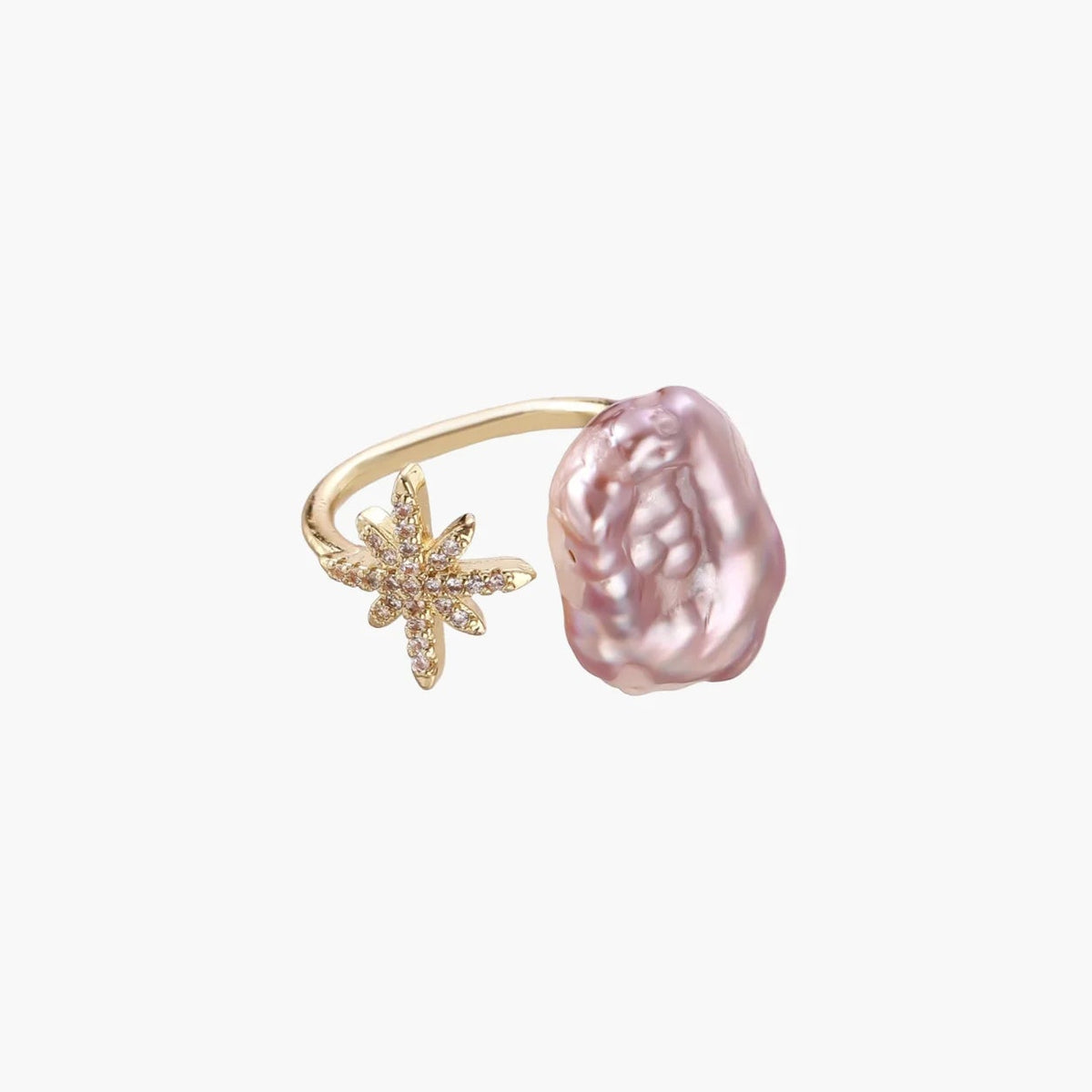 Uma pérola barroca de água doce, conhecida por potenciar a energia feminina, encontra um delicado pendente em forma de estrela com acabamento pavé neste anel ajustável banhado a ouro 14K, que transmite vibrações celestiais e sonhadoras.