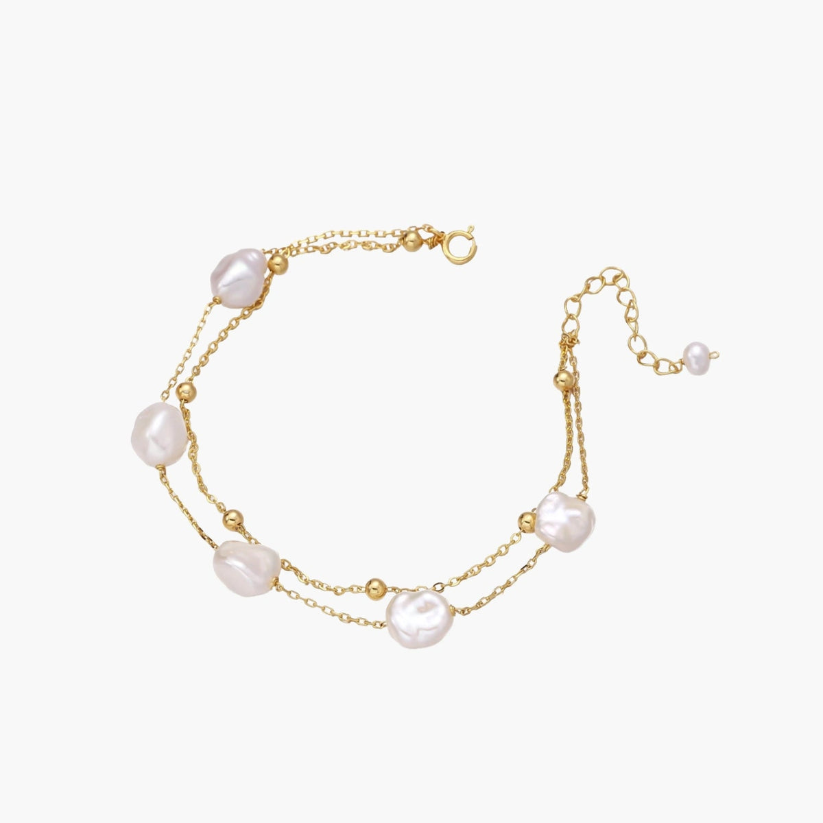 Pérolas barrocas, cada uma naturalmente única e imperfeitamente bela, flutuam ao longo de correntes duplas em ouro vermeil 18K, evocando aquela energia feminina suave e sofisticada.