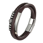 The leather and stainless steel bracelet is the perfect choice for a stylish and long-lasting look. Made from high-quality leather and 316L stainless steel, it features a magnetic clasp for added security and comes in a variety of colors and sizes. Add a touch of style to your look with this bracelet.