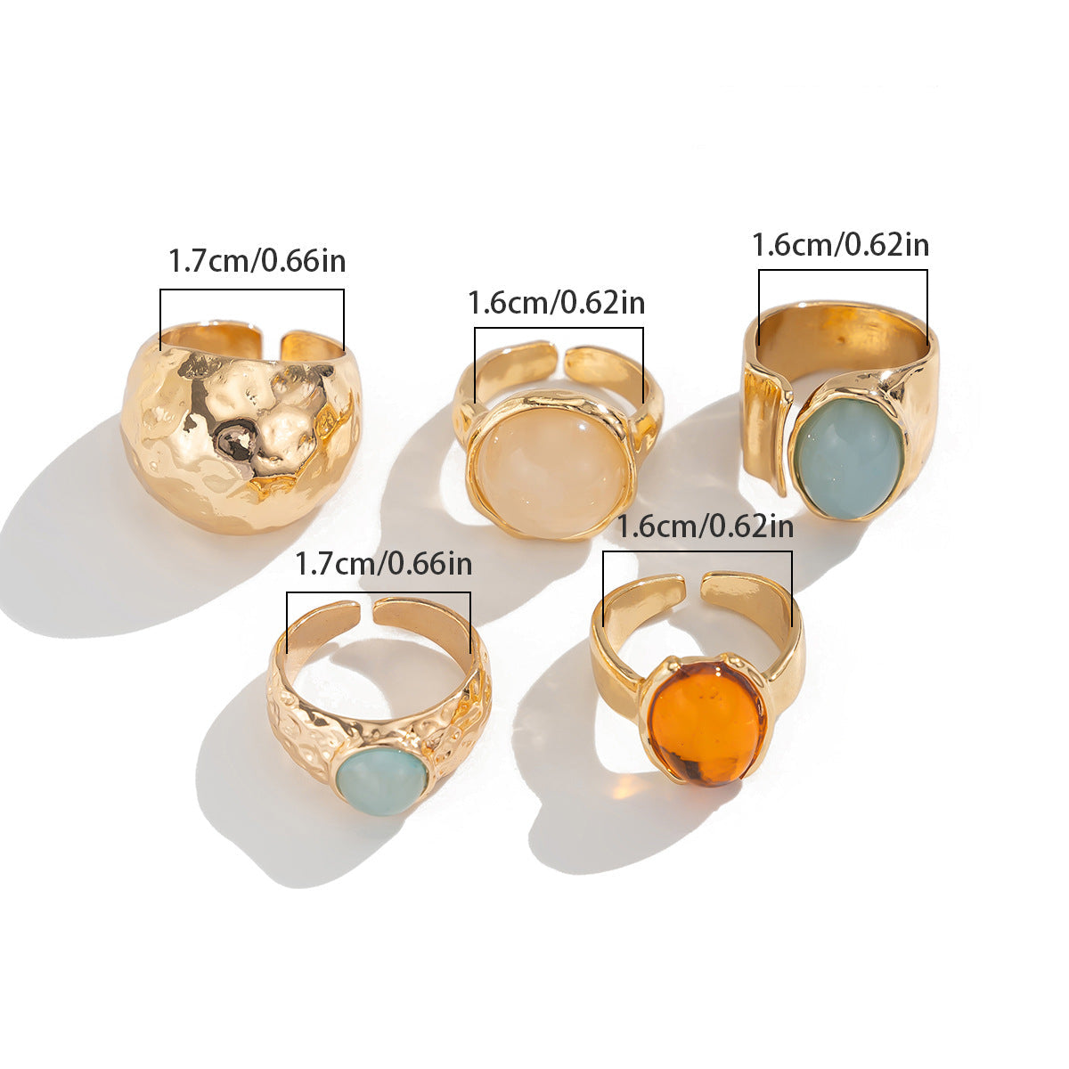 Juego de 5 anillos irregulares