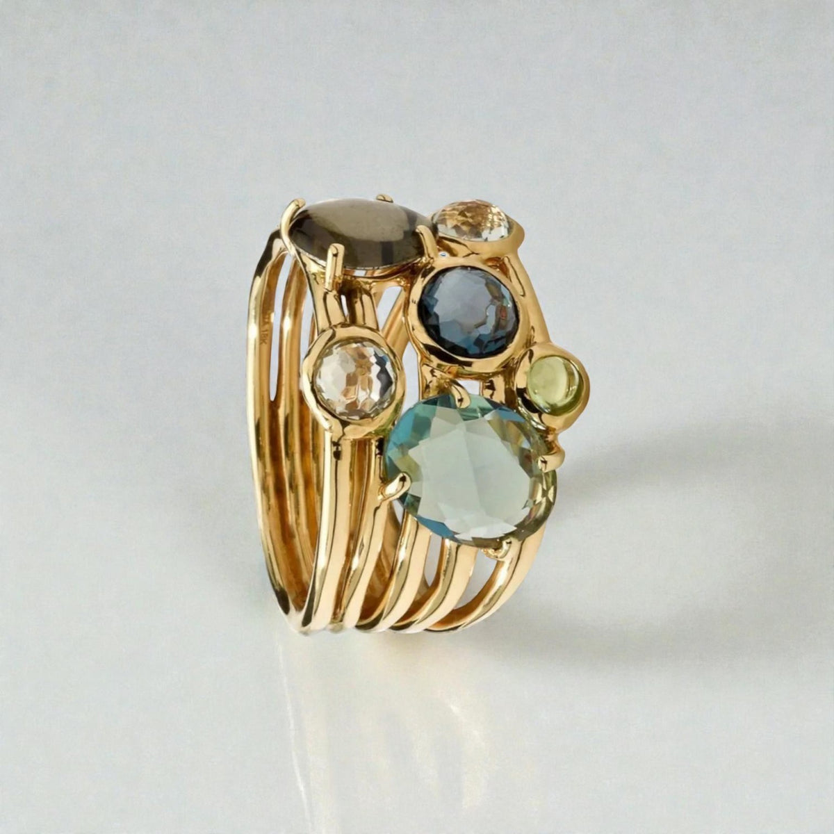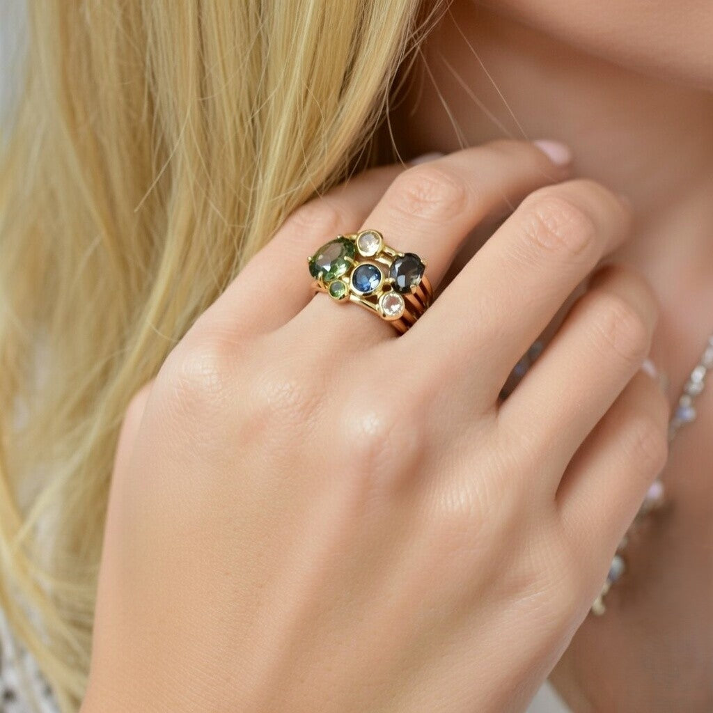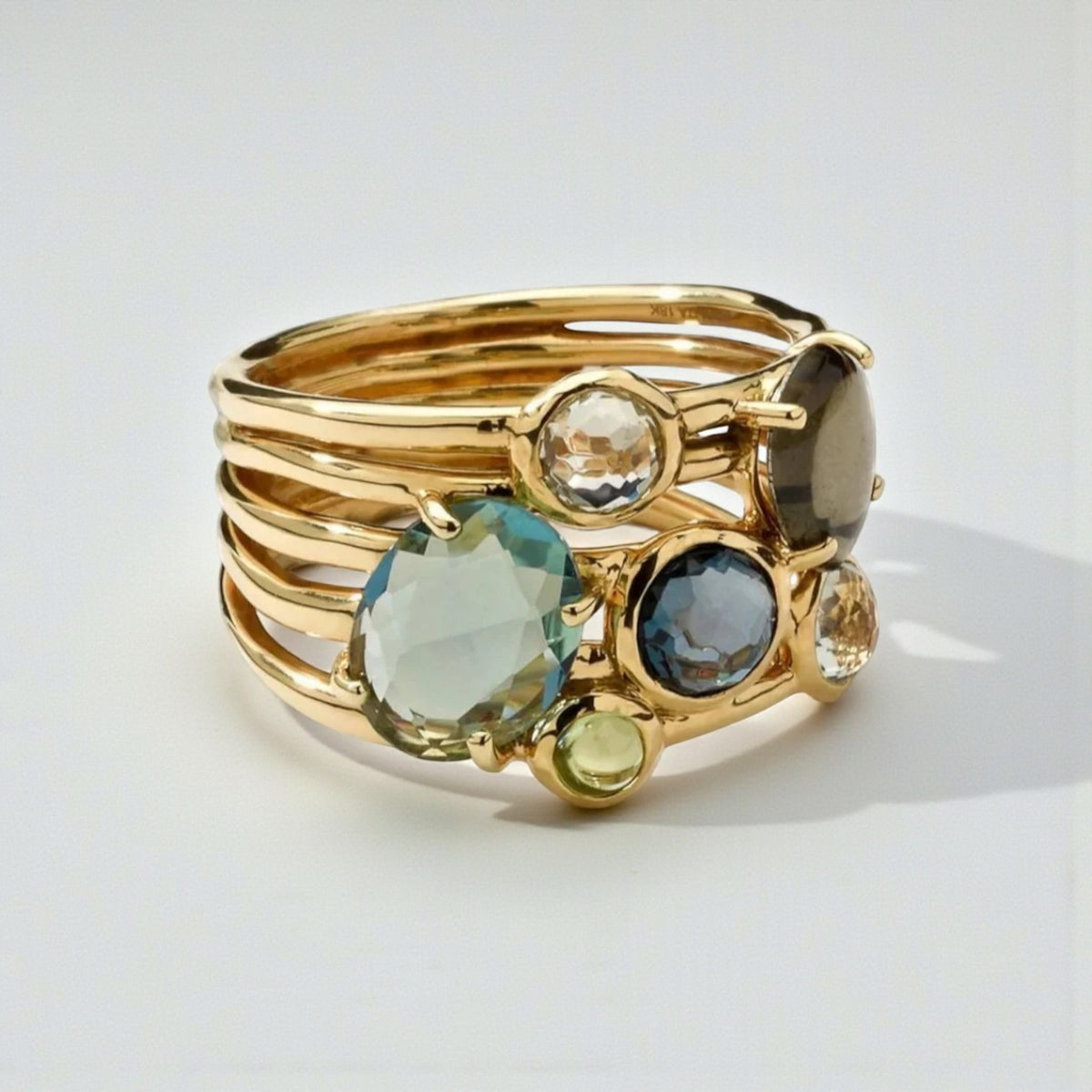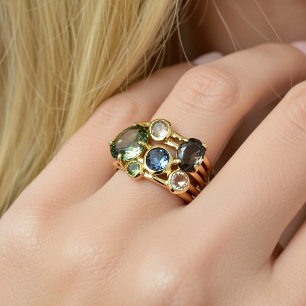 O Anel Geométrico Multicolor destaca-se pelo seu design moderno e criativo, onde formas geométricas e detalhes multicoloridos se unem para criar uma peça cheia de personalidade. Ideal para mulheres que gostam de acessórios ousados e contemporâneos, este anel acrescenta um toque artístico e vibrante a qualquer look, seja casual ou mais arrojado.