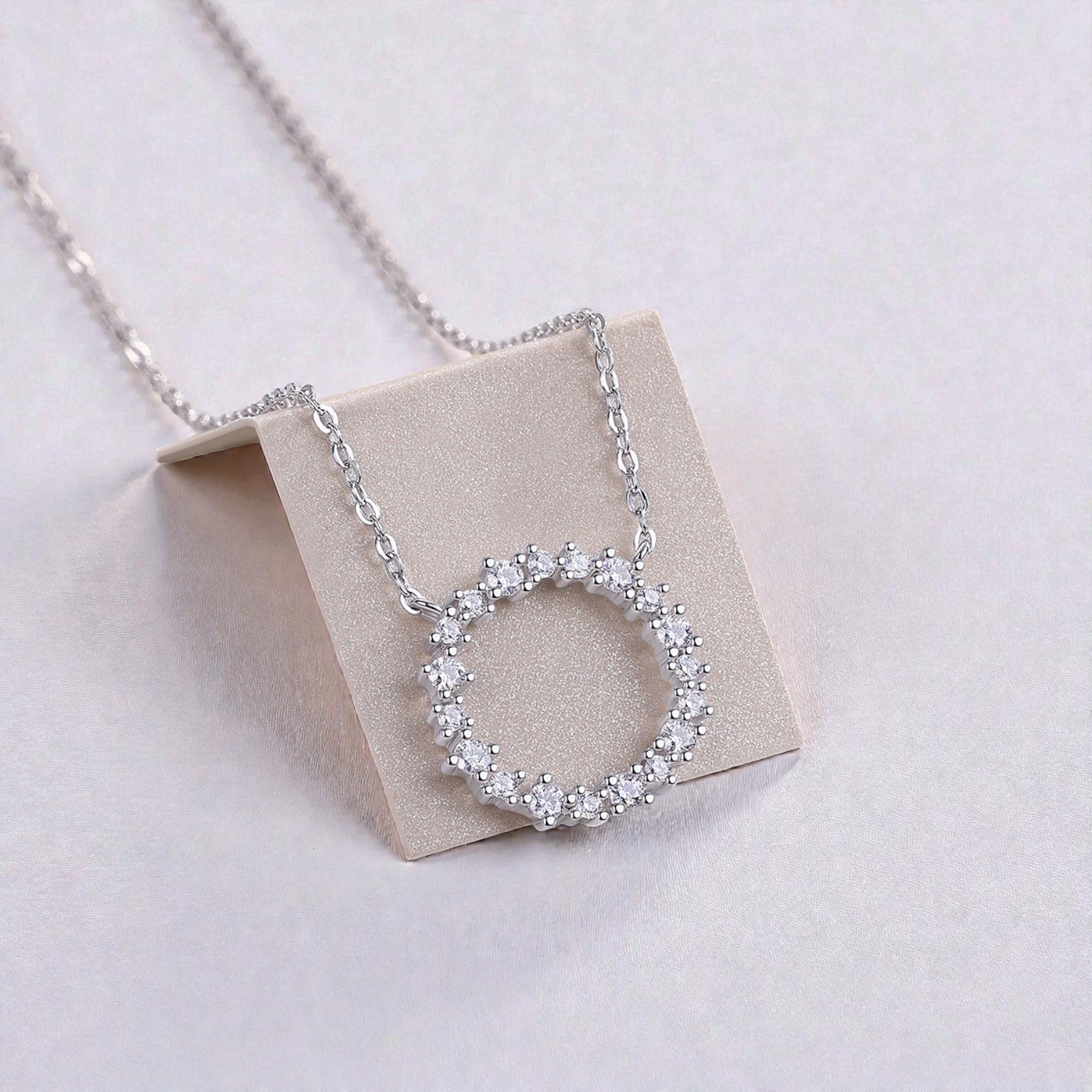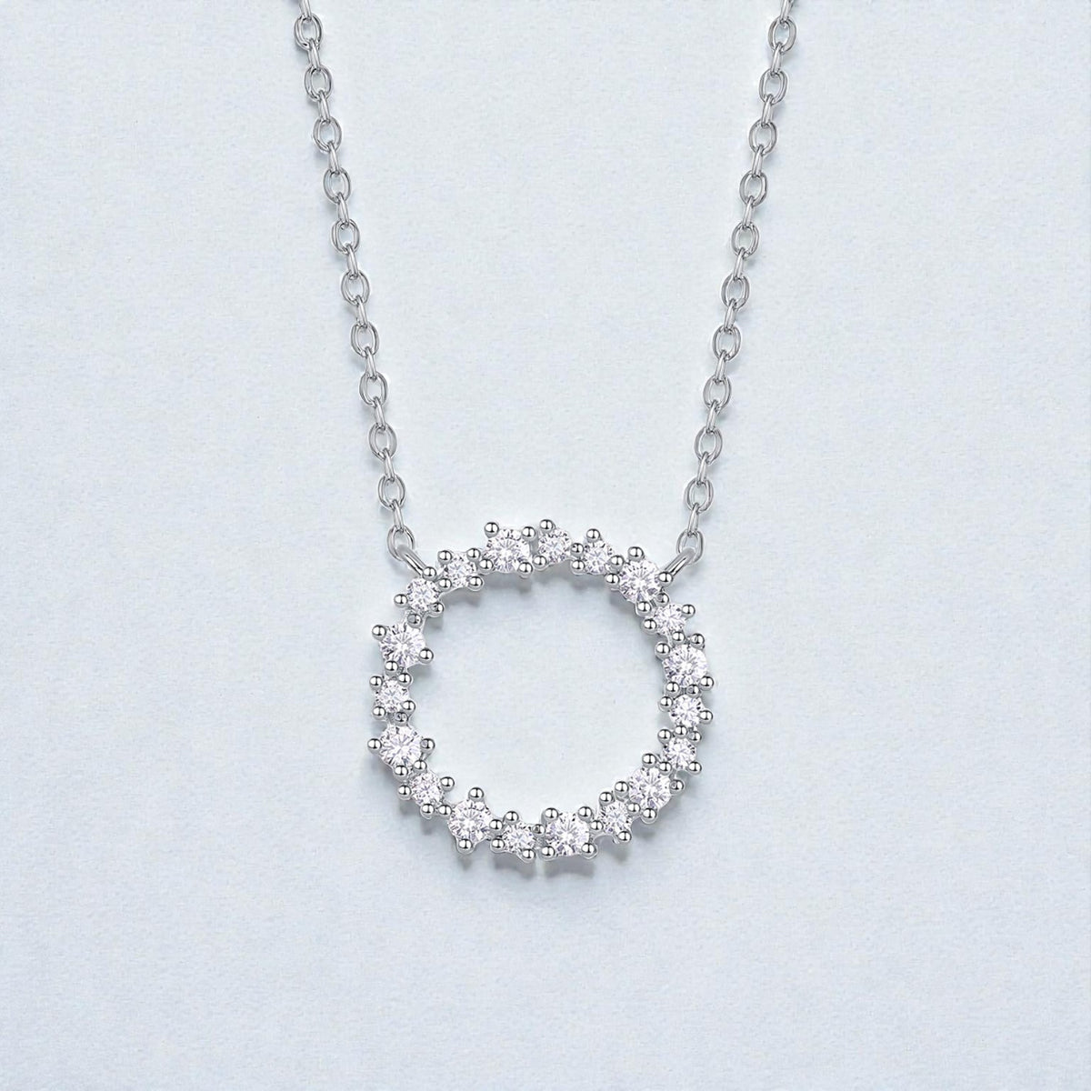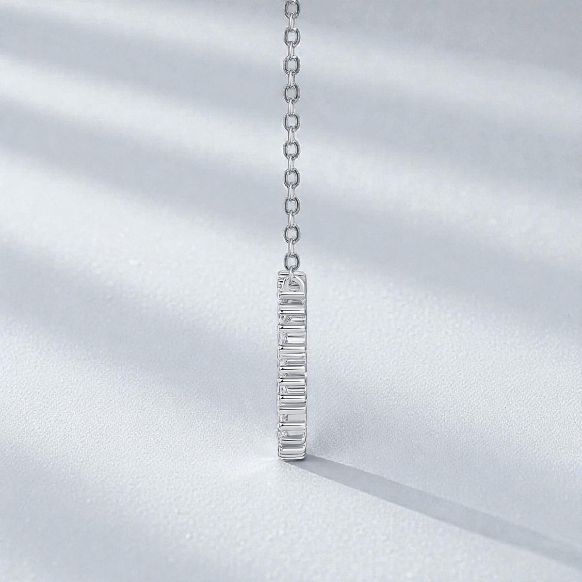 A combinação da prata de lei com o acabamento em platina confere maior durabilidade e um brilho refinado, enquanto a moissanite oferece luminosidade excecional, comparável à de um diamante. Um colar discreto, mas de forte presença, perfeito para complementar qualquer look com sofisticação.