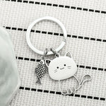 Este adorable llavero combina encanto y originalidad con un diseño inspirado en el mundo de los dibujos animados. Con un curioso gatito jugando con un pequeño pez, es la elección perfecta para quienes aman los accesorios creativos y llenos de personalidad.
