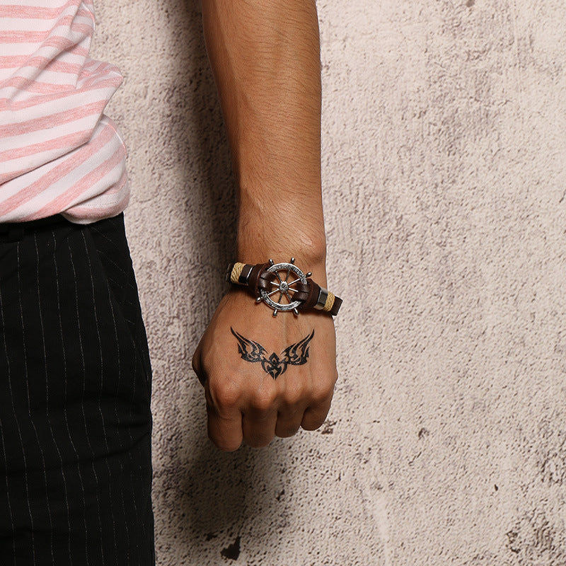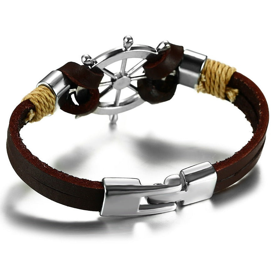 La correa de cuero para rueda de timón vintage está disponible en una variedad de colores vibrantes. Fabricado en cuero de alta calidad y detalles en acero inoxidable y aleación de metal, tiene un ancho de 10 a 38 mm y un tamaño de 19,5 a 20,5 cm. Asegúrate un estilo clásico y elegante con esta pulsera.