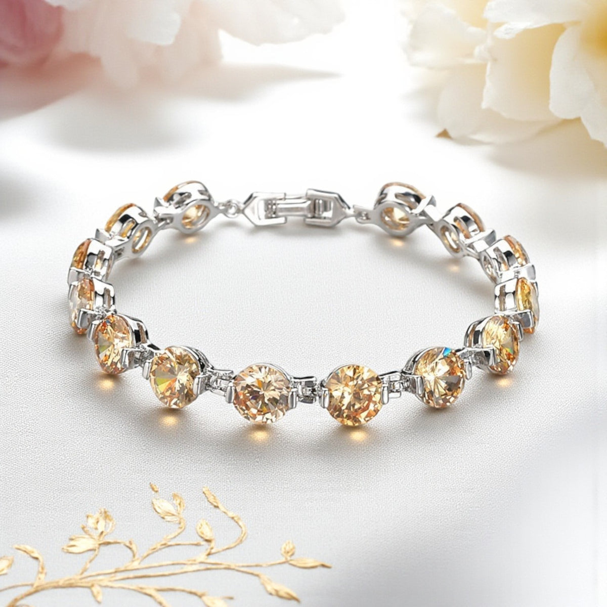 A Pulseira com Zircónias é uma peça de elegância intemporal, ideal para quem aprecia brilho, delicadeza e sofisticação. Cada zircónia é cuidadosamente lapidada para refletir a luz com intensidade, criando um efeito cintilante que realça o pulso com charme e requinte. O design clássico e versátil adapta-se facilmente a qualquer ocasião, seja para um evento especial ou para complementar um look do dia a dia com um toque de luxo discreto.