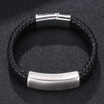 Um acessório moderno, robusto e elegante. Esta pulseira combina o toque natural do couro com a resistência do aço inoxidável, criando um visual sofisticado e versátil para o dia a dia ou ocasiões especiais. O fecho magnético garante praticidade e segurança, enquanto os detalhes cuidadosamente trabalhados realçam o carácter distinto da peça. Ideal para quem procura estilo com atitude.