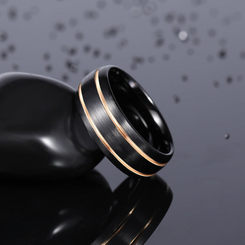 Este anel destaca-se pela união perfeita entre modernidade e elegância, combinando o profundo tom preto com o brilho sofisticado do rose gold. Fabricado em aço de tungsténio, um material reconhecido pela sua resistência excecional, durabilidade e acabamento premium, é a escolha ideal para quem procura uma peça distinta, confortável e com forte presença visual. Um acessório versátil que se adapta ao uso diário ou a ocasiões especiais.