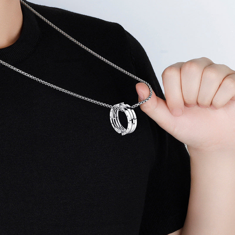 Con una cadena de 46 cm y un acabado robusto, el collar ofrece un aspecto sofisticado y contemporáneo, perfecto para quienes aprecian los accesorios con significado y durabilidad.
