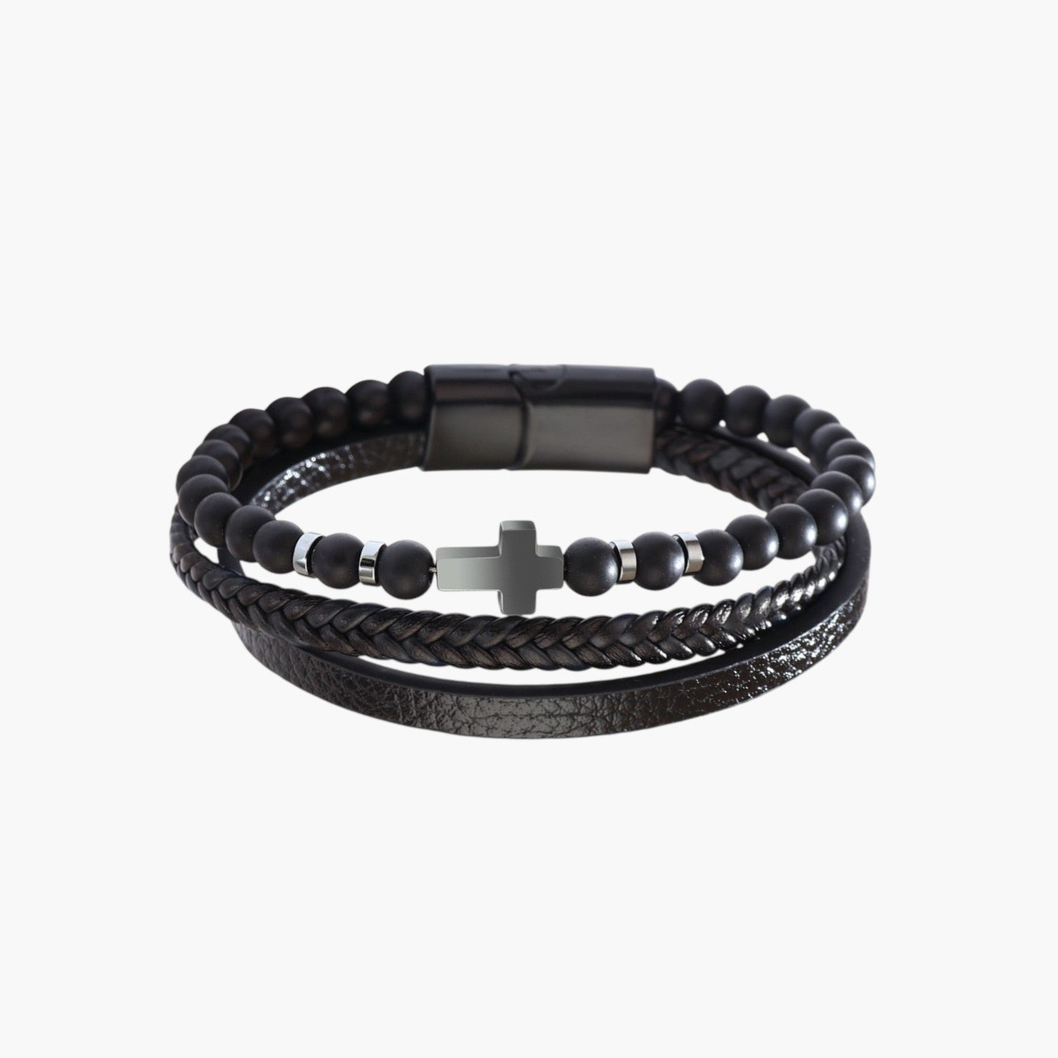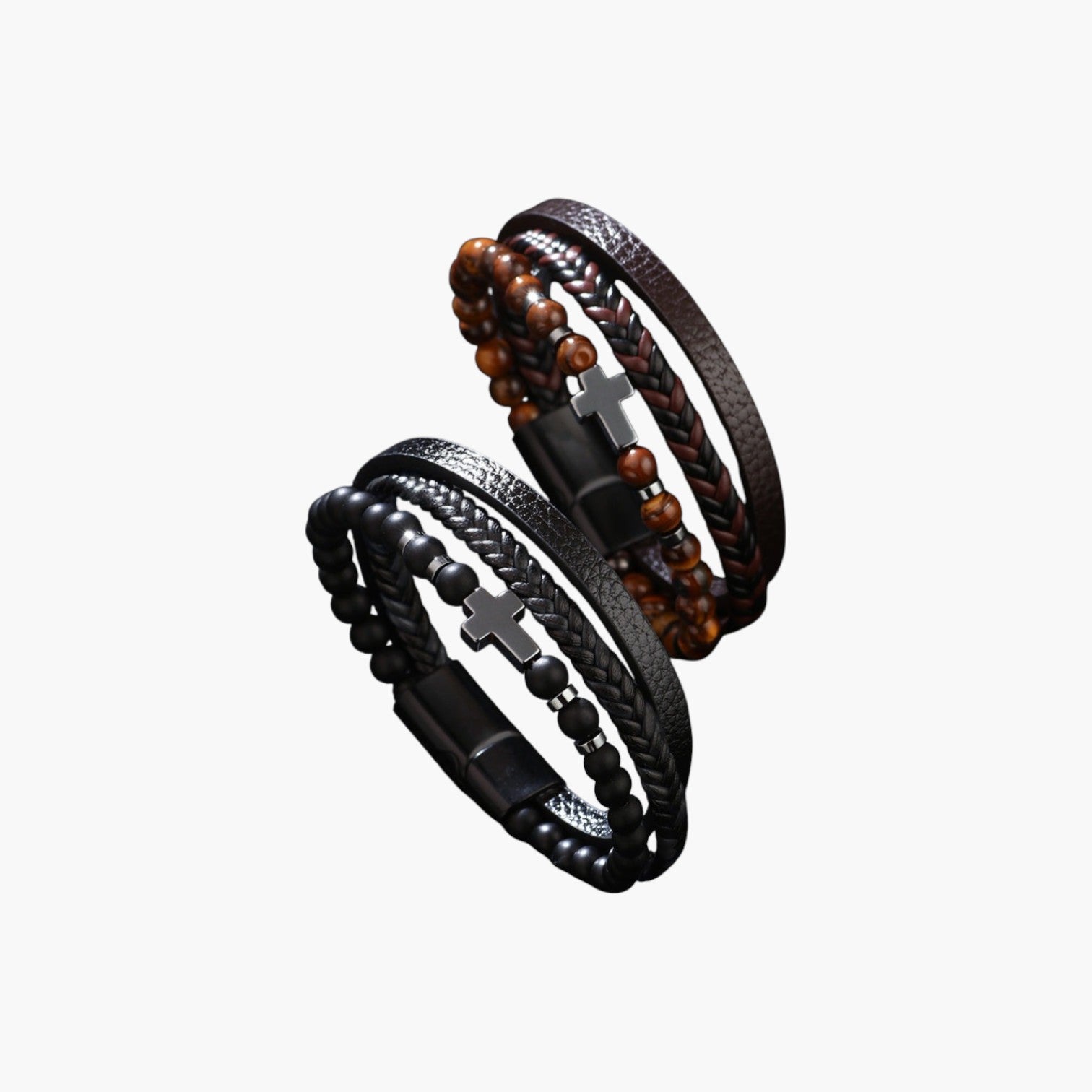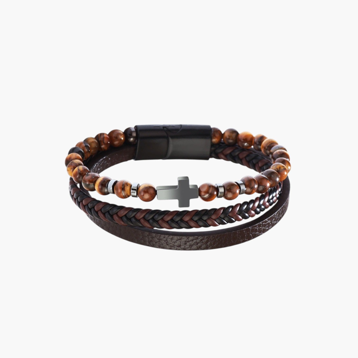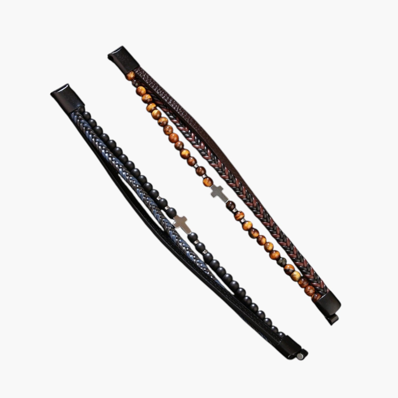 Material: Cuero / Piedra natural (ojo de tigre, ónix, hematita)