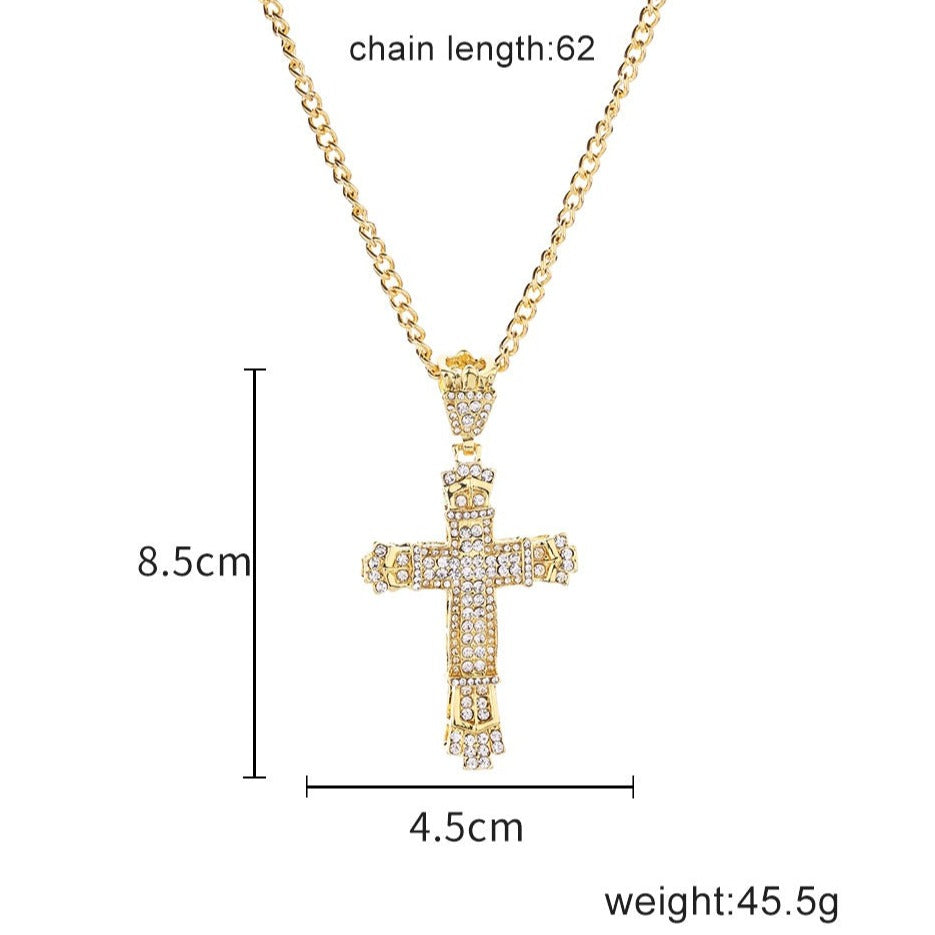 Este collar de cruz es perfecto para añadir un toque de estilo y elegancia a tu look. Fabricado con diamantes de imitación de cristal de alta calidad y aleación de metal, cuenta con un colgante de 45 * 85 mm y una cadena de 62 cm para un ajuste cómodo. Elija entre varios colores disponibles para combinar con su estilo único.