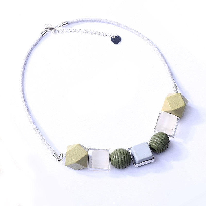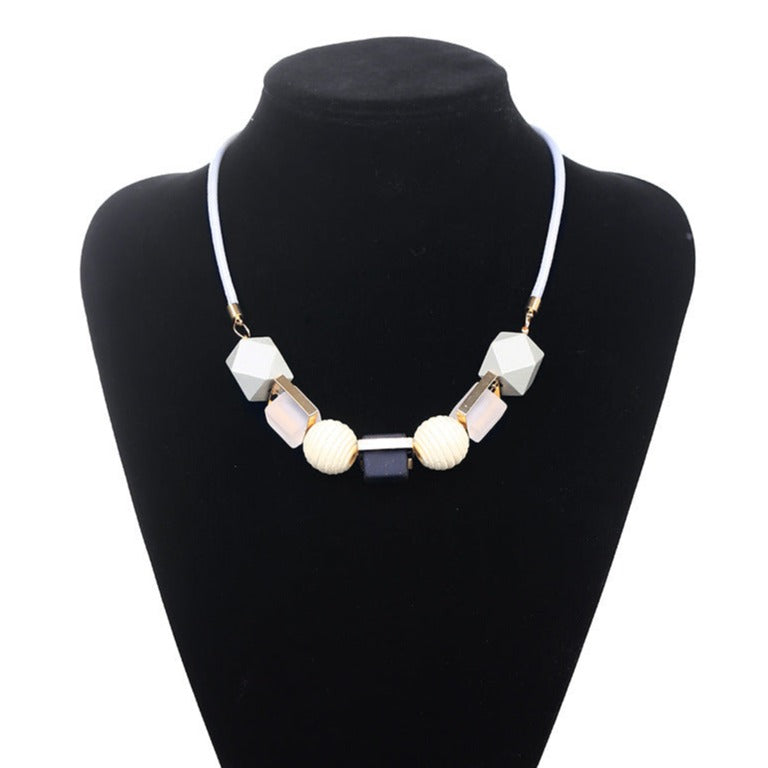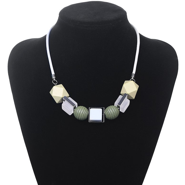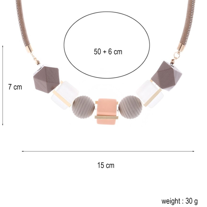 Este hermoso collar geométrico está disponible en varios colores para combinar con cualquier look. Hecho de cuerda de alta calidad, madera y cristal, y acabado con aleación de metal, es duradero y elegante. El tamaño se puede ajustar de 50 a 56 cm para un ajuste perfecto. Añade un toque único a tu estilo con este collar geométrico.