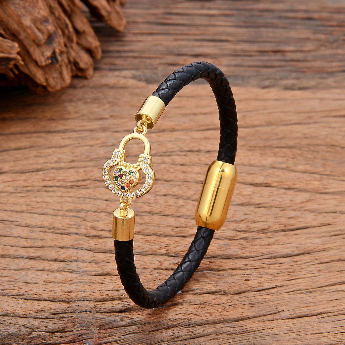 La pulsera de cuero negro y dorado está fabricada con materiales de alta calidad, cuero y circonitas, y cierre magnético. Su metal es acero inoxidable o aleación metálica, garantizando durabilidad y resistencia. Disponible en varios tamaños para un ajuste perfecto. ¡Siéntete elegante y sofisticada con esta pulsera!