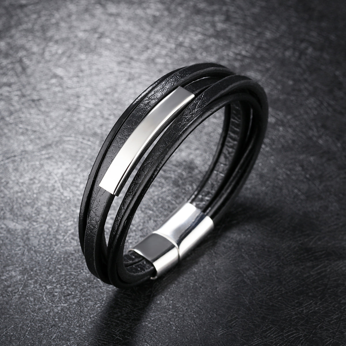La pulsera de cuero y acero inoxidable es el accesorio perfecto para añadir un toque de elegancia y estilo a tu look. Fabricado con materiales de alta calidad, viene en una variedad de colores para combinar con cualquier atuendo. Con un ancho de 15 a 22 mm y un tamaño de 20 a 21 cm, garantiza un ajuste cómodo y duradero.