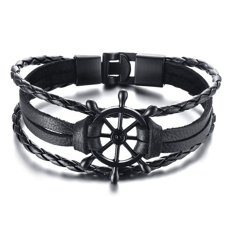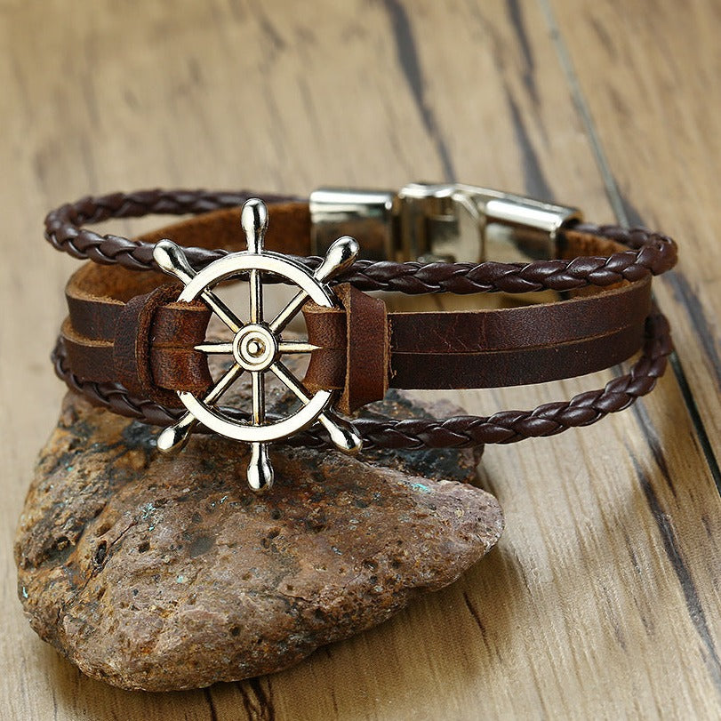 Añade un toque vintage a tu look con la pulsera Vintage Wheel of the Rudder. Fabricado en cuero y aleación de metal, mide 32 mm de ancho y 19-20 cm de largo. Disponible en diferentes colores. Disfruta del estilo y la calidad de esta exclusiva pulsera.