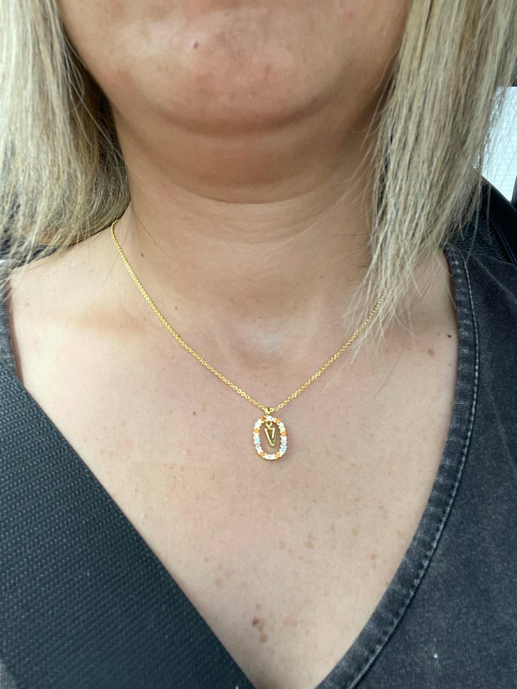 Prix unitaire parO Colar Letra com Zircônia é a peça perfeita para adicionar um toque elegante e pessoal ao seu visual. Feito em zircônia cúbica e liga de metal dourado, possui um pingente de 10,5*15 mm com a letra de sua escolha. Com a corrente ajustável de 40 a 50 cm, se adapta perfeitamente a qualquer tamanho e estilo.