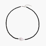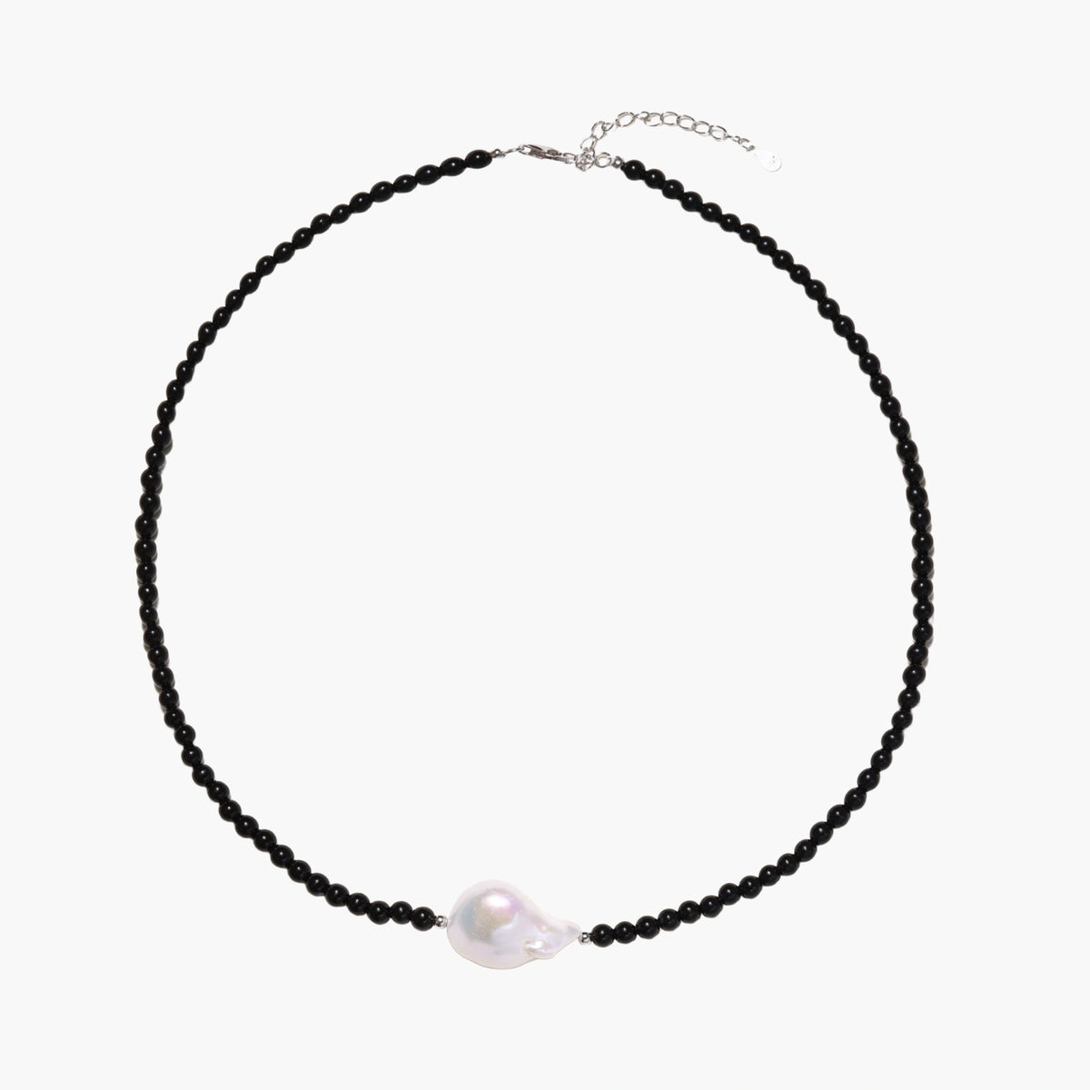 A ágata negra brilhante serve de base para esta pérola barroca luminosa, conhecida por nutrir a energia feminina, num estudo elegante de contrastes.