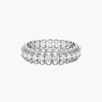 Este anel eternity em prata de lei, associado à intuição e clareza, apresenta delicadas moissanites que captam a luz em todos os ângulos, criando um brilho contínuo e sofisticado.