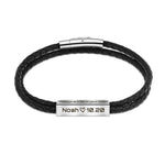 Esta pulseira de couro e aço inoxidável é personalizável com a gravação de textos, letras ou números através de tecnologia a laser. Disponível em várias cores e feita com couro e aço Inoxidável, possui largura de 6 - 8 mm e tamanho de 18 - 19 cm. Um acessório único e durável.