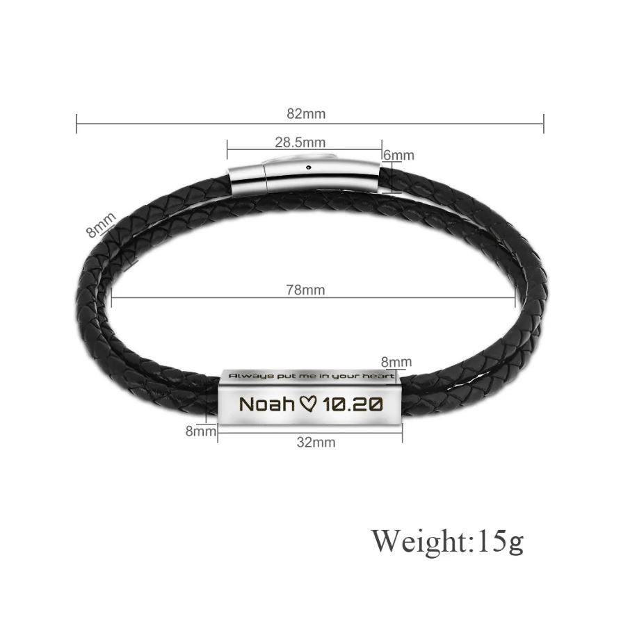 Pulseira Personalizada de Couro e Aço Inoxidável
