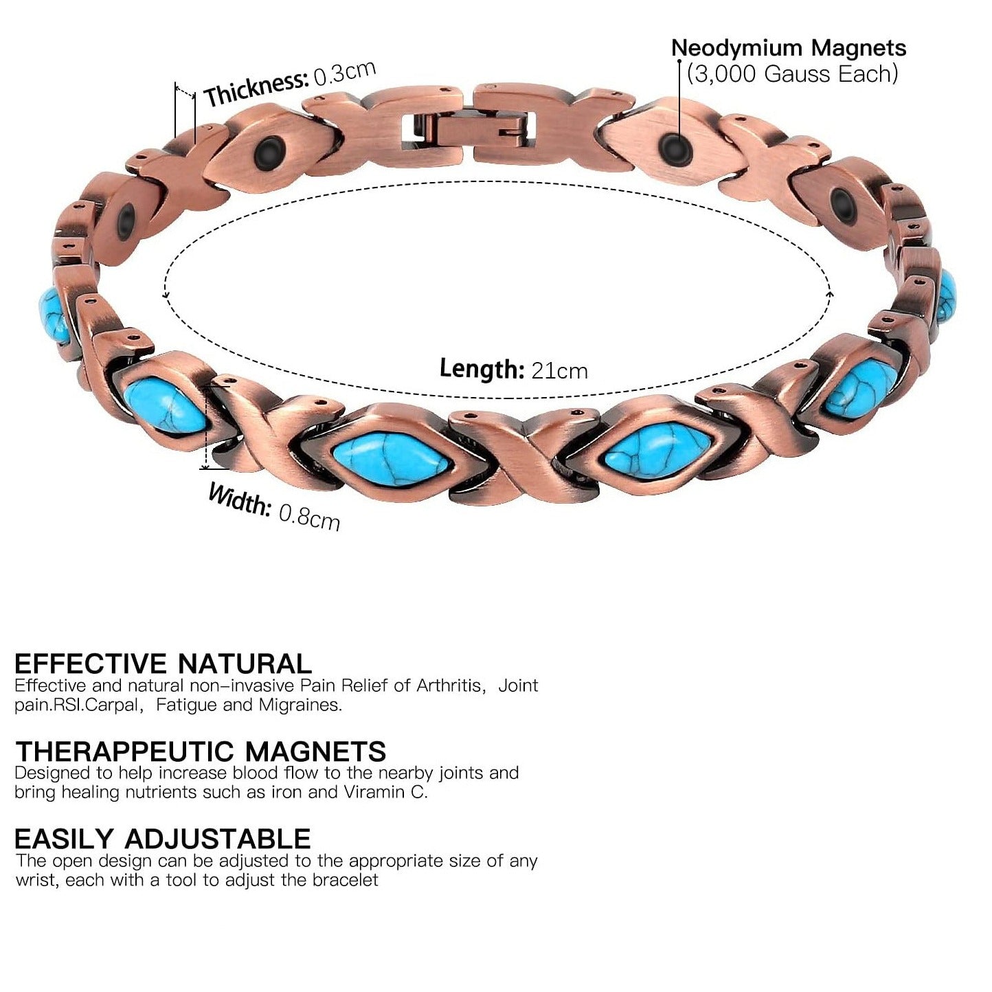 A pulseira Retro Turquesa Magnética possui uma combinação única de pedra natural e liga de metal, além de ser magnética para promover um estilo de vida saudável. Com largura de 8 mm e tamanho de 20 a 21 cm. Disponível em diversas cores. Adicione um toque de elegância e benefícios à sua rotina com essa pulseira.