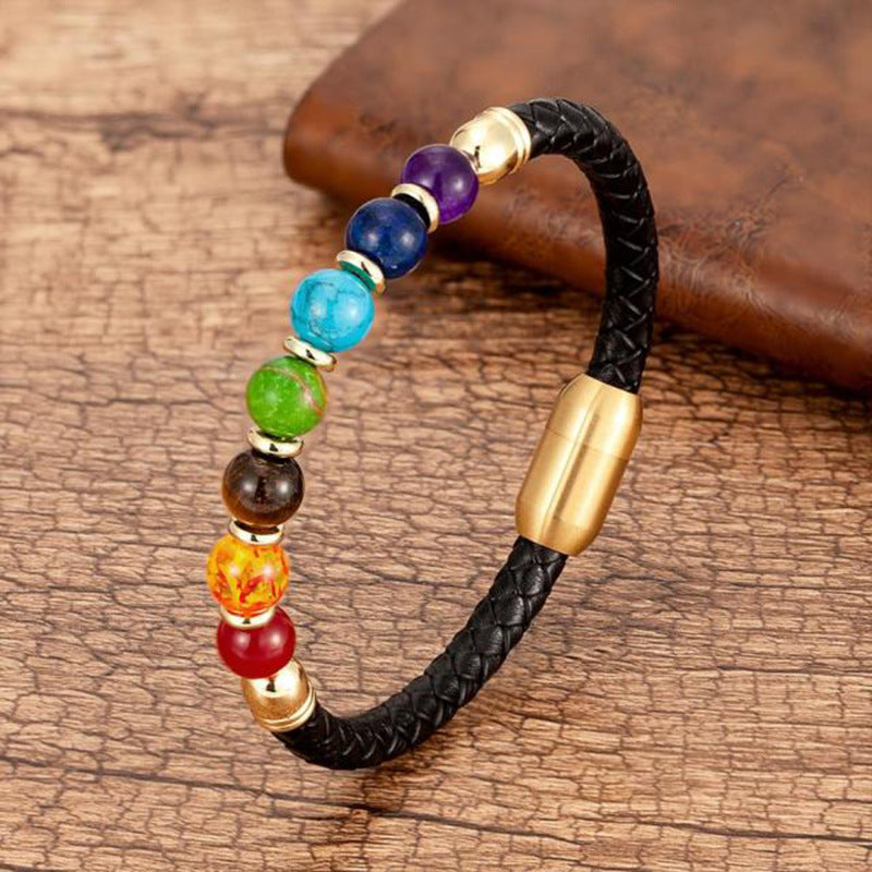 A pulseira de couro e pedra natural é uma opção elegante e versátil para o seu estilo. Feita com couro de alta qualidade e pedras naturais como olho de tigre, ágata, ela traz benefícios terapêuticos e de proteção. O fecho magnético garante segurança e praticidade. Disponível em várias cores e tamanhos.