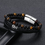 Material: Couro / Pedra Natural - Olho de Tigre / Pedra de Lava